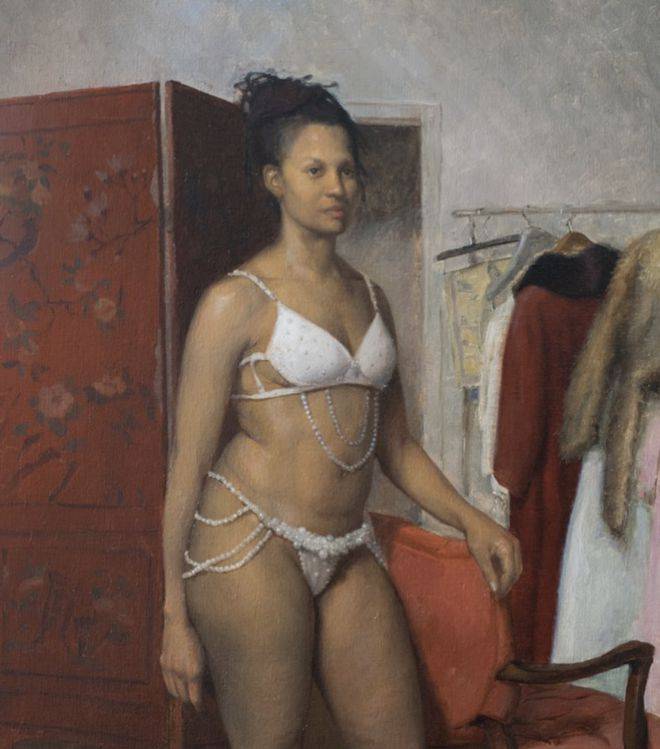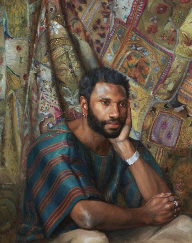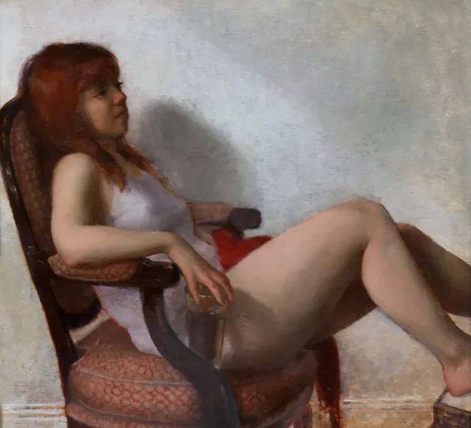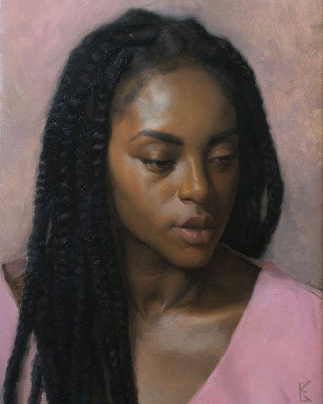 凯瑟琳的艺术创作,始终围绕着对人类精神复杂性的深刻探索。她相信,每个人都是独一无二的存在,拥有着自己独特的故事与情感。因此,在她的作品中,我们常能看到各种体型、种族、性别认同的模特,他们以最真实的姿态出现在画布上,没有刻意的美化或扭曲,只有最纯粹的呈现。凯瑟琳通过精细的写生技巧,不仅捕捉了模特的外貌特征,更深入挖掘并展现了他们内在的安静、脆弱与真实。这种对人性本质的深刻洞察与细腻描绘,使得她的作品充满了震撼人心的力量。