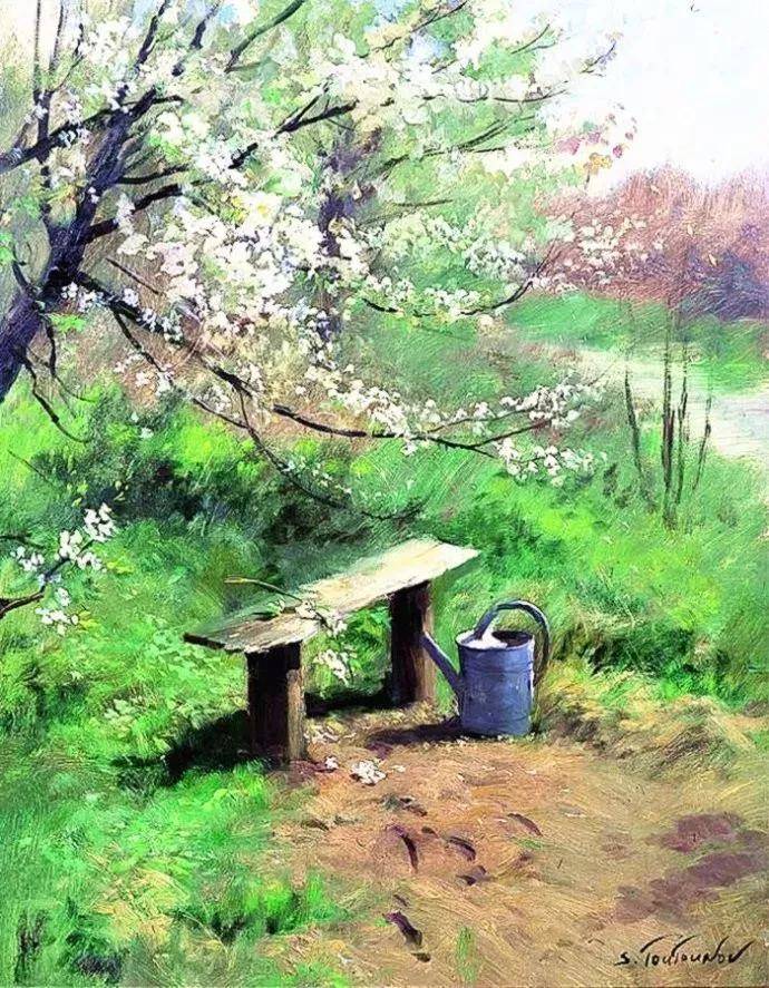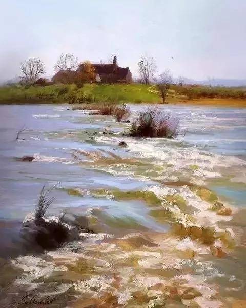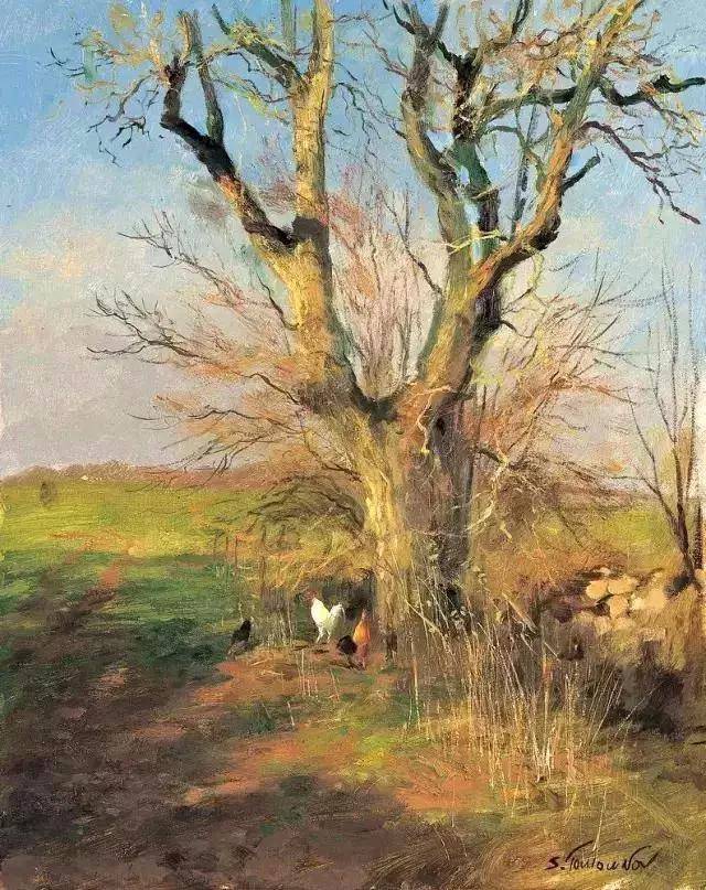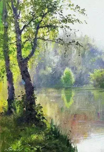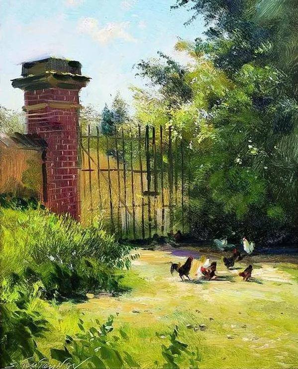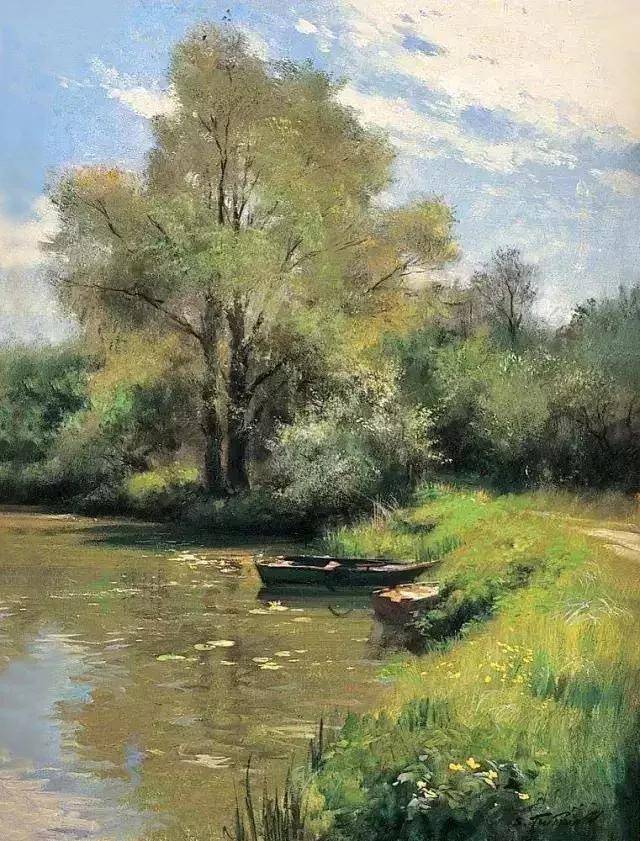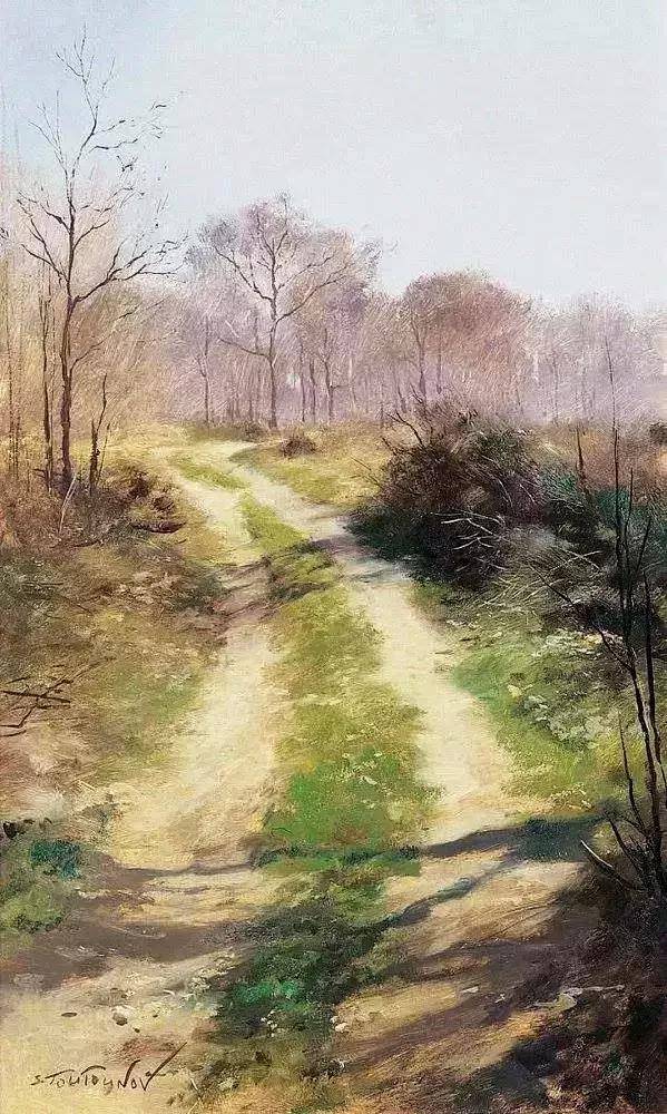 Toutounov的田园风景画尤为出色,他的色彩运用清晰而干净,笔触果断而有力,每一笔都透露出他对大自然的热爱与敬畏。他擅长捕捉光影,通过明暗对照营造出独特的氛围,使观众仿佛置身于画中的世界,感受到宁静与和谐。