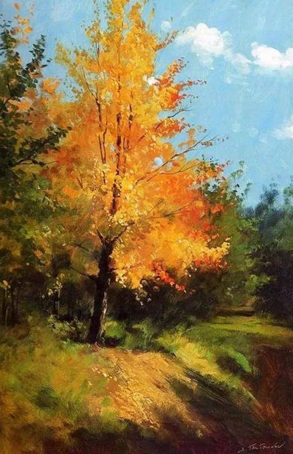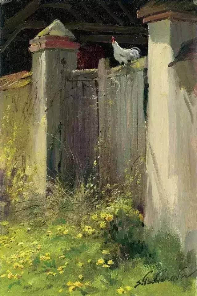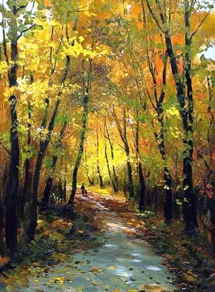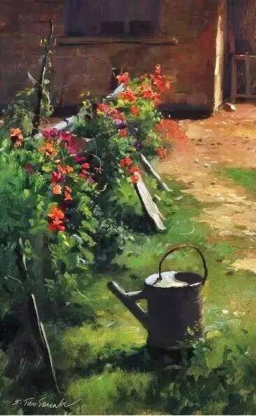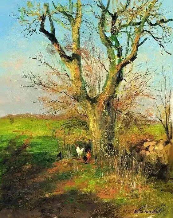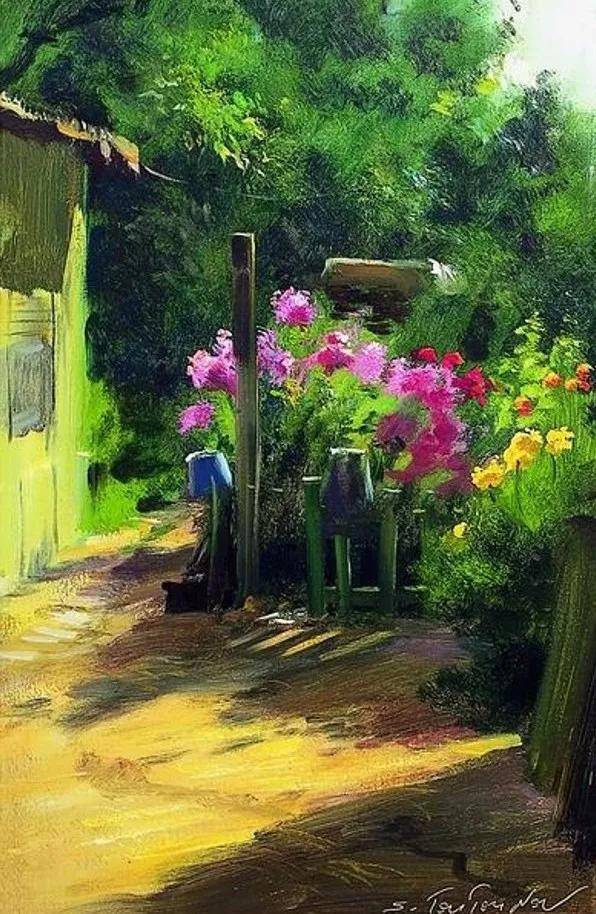 Toutounov的田园风景画尤为出色,他的色彩运用清晰而干净,笔触果断而有力,每一笔都透露出他对大自然的热爱与敬畏。他擅长捕捉光影,通过明暗对照营造出独特的氛围,使观众仿佛置身于画中的世界,感受到宁静与和谐。
