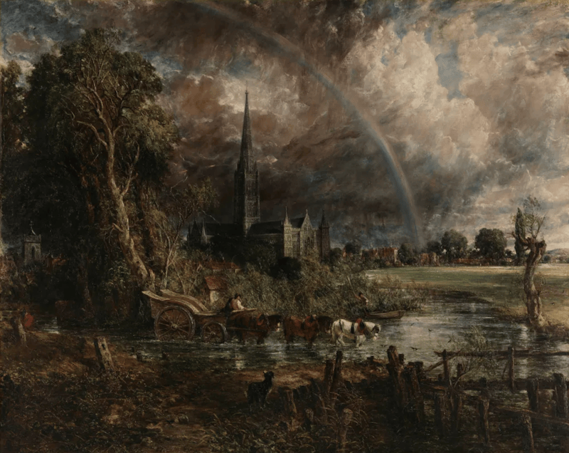 当然,如果你认为康斯太勃尔的作品里没有诗意,那就大错特错了。当然,将他的作品与国民信托所兜售的田园牧歌式的英格兰景象联系起来也是错误的。康斯太勃尔的艺术是粗犷的,有时带有忧郁的气息。其作品《弗拉特福德磨坊》中,他甚至意味深长地将自己的签名刻在了代表泥土的棕色区域上。
