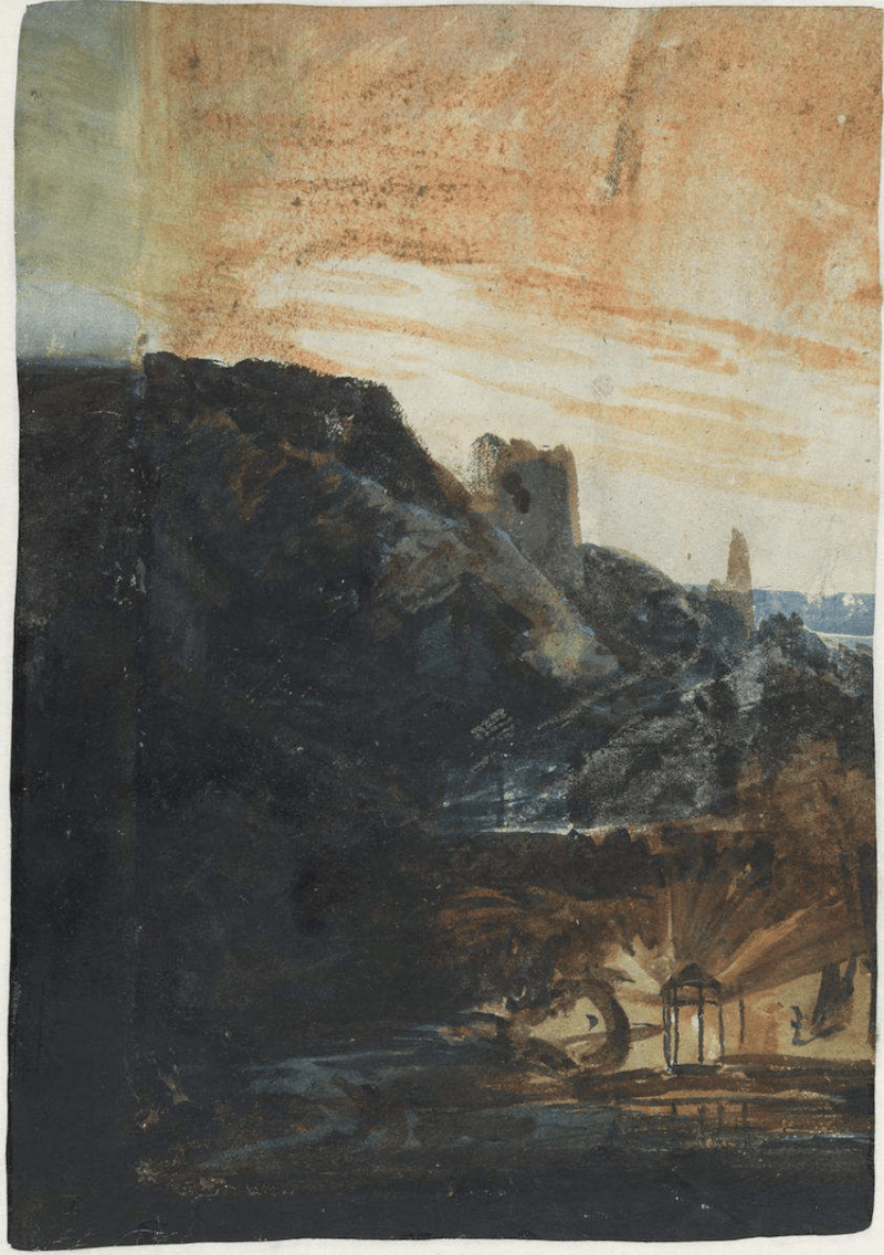 透纳,《苔藓覆盖的小屋和棚屋,一位吸烟的男子和一盏灯笼》,1794-1795年