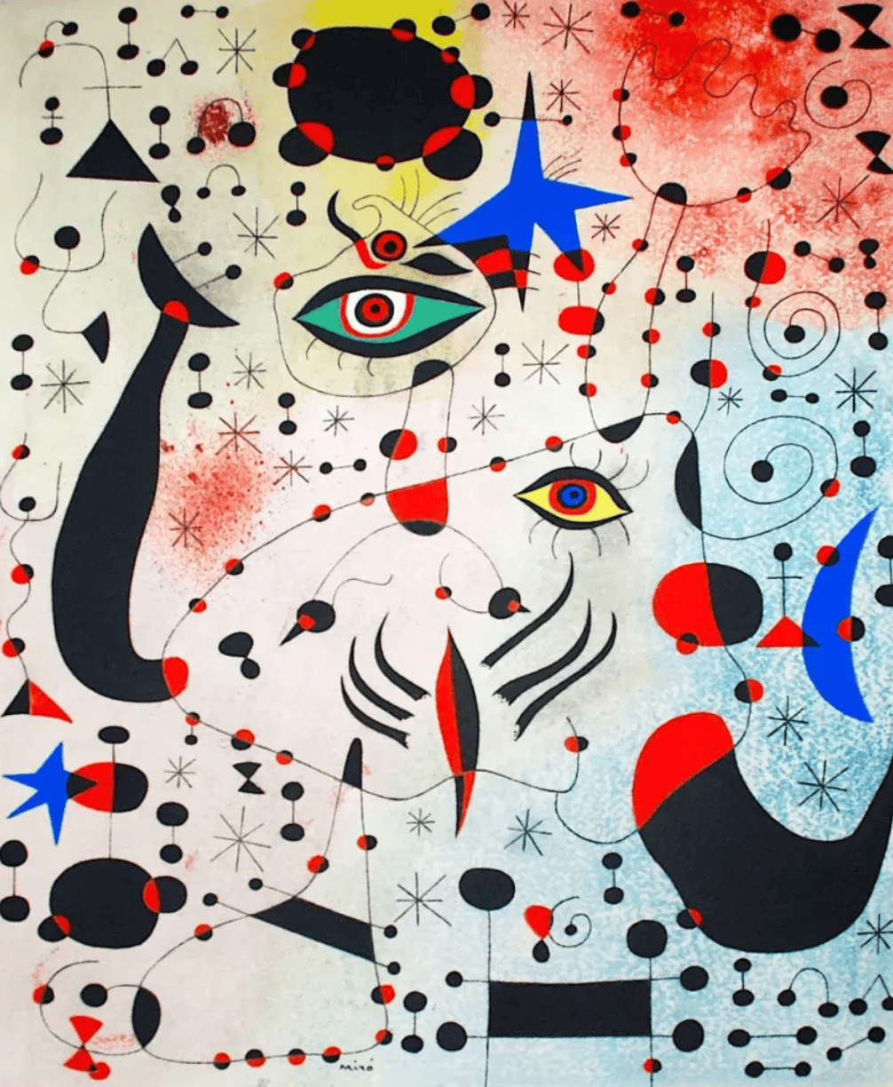 1924年,米罗加入了超现实主义团体。米罗作品中固有的象征性和诗意,以及作品中固有的二元性和矛盾性,与该团体所倡导的梦幻般的自动主义风格完美契合。米罗的许多作品不再像以往那样杂乱无章、缺乏焦点,他开始尝试拼贴和绘画技法,以此来打破传统绘画的框架。