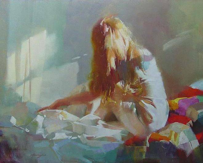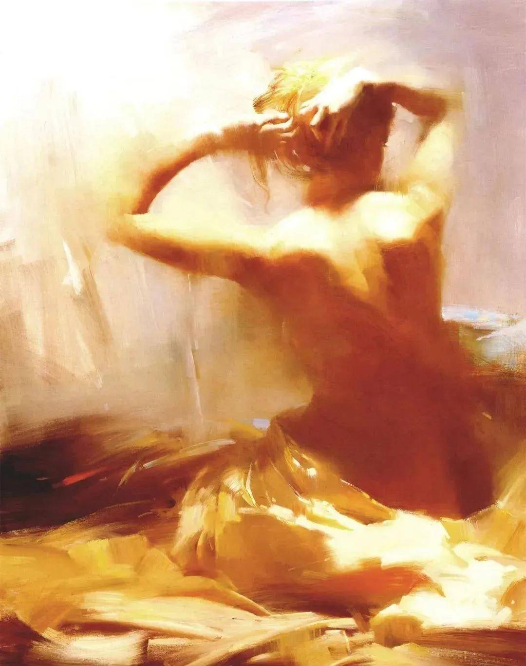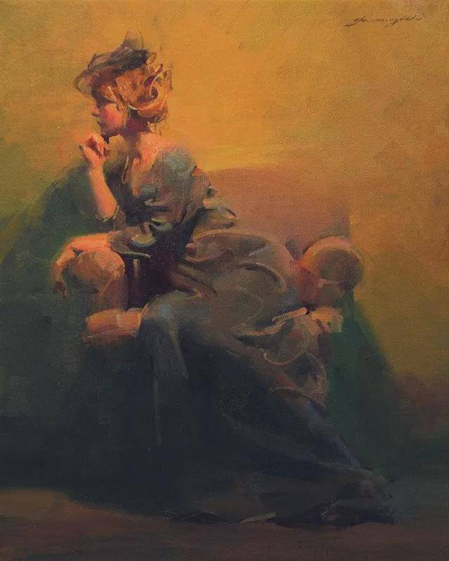 他的作品如同一场视觉上的盛宴,让人流连忘返。虽然属于当代艺术范畴,但其中却蕴含着世纪回归的古老传统与深厚底蕴。他的人物形象既具体又抽象,既细腻又恢弘,仿佛将观者带入了一个既熟悉又陌生的艺术世界。在他的作品中,每一个场景、每一个人物、每一个动态、每一个构图都经过精心设计与安排,既捕捉住了瞬间的美好,又蕴含着永恒的哲理。
