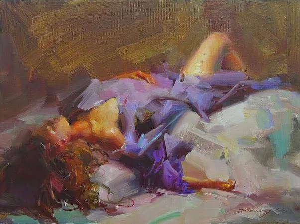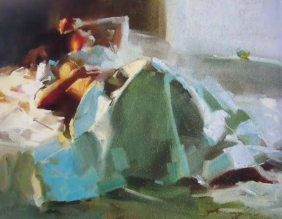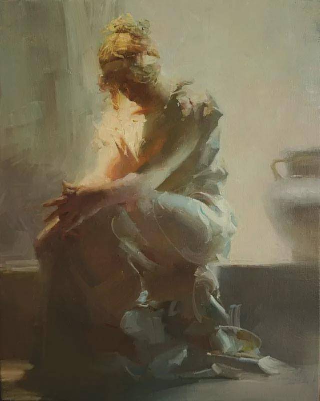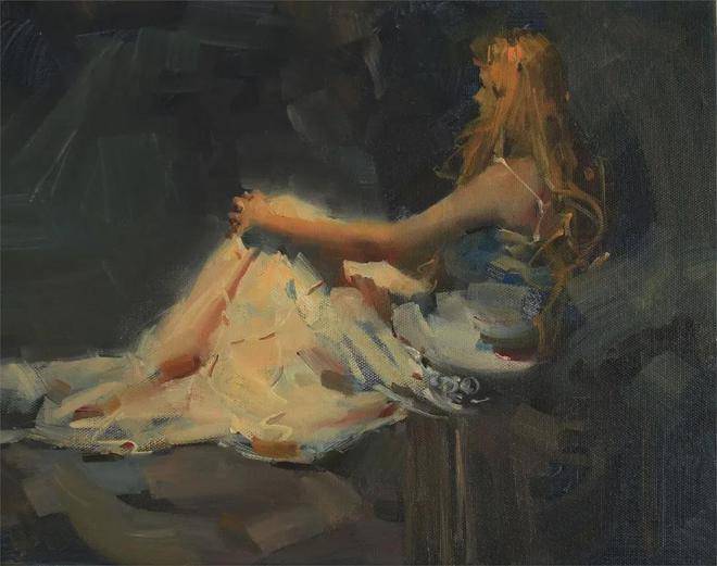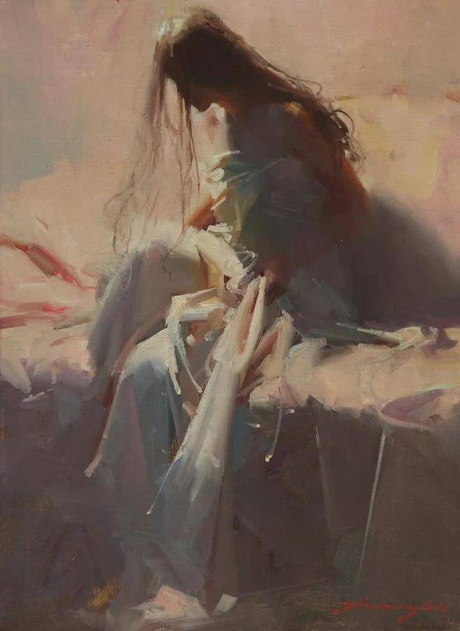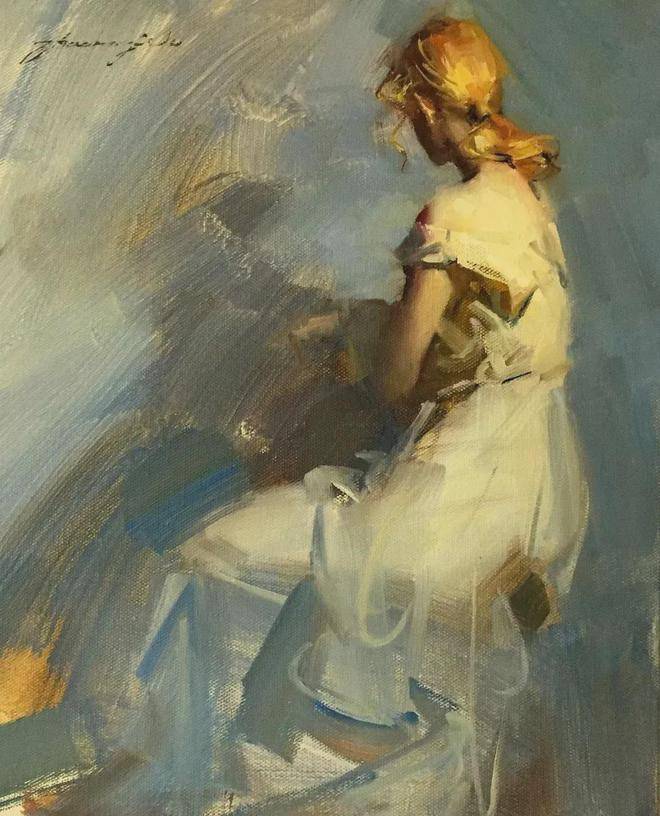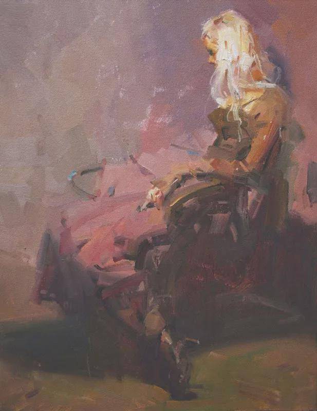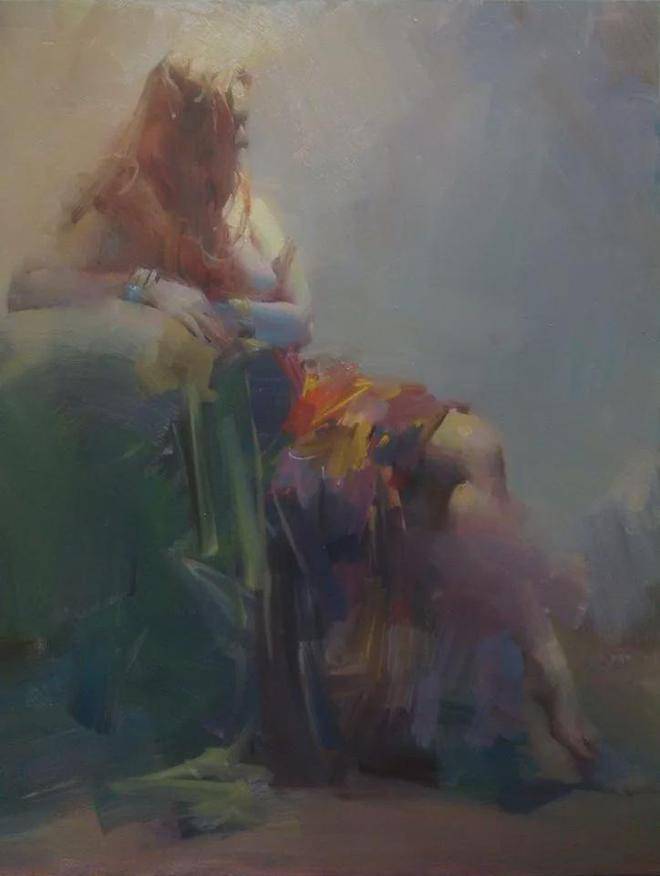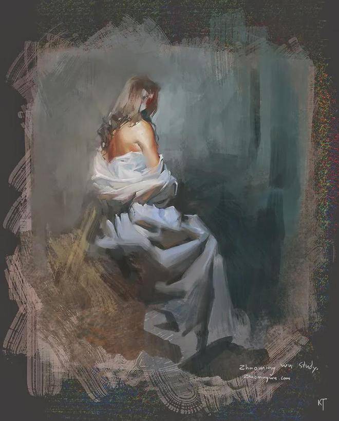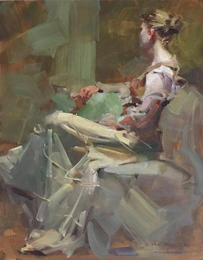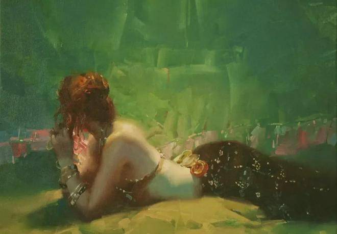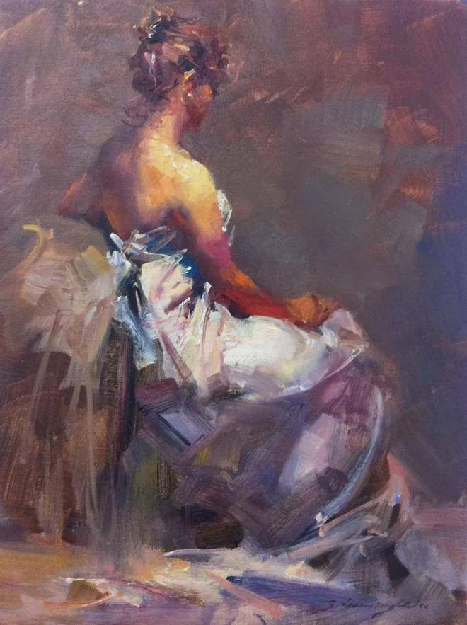 在人物写生方面,吴兆铭展现出了非凡的才华与独特的艺术风格。他往往以迅疾的笔触在画布上勾勒出几个简练的符号,这些符号如同构图的骨架,支撑起整个画面的结构。随后,他运用稀薄的重色,整体地铺设出阴影与暗部,营造出一种深邃而神秘的氛围。这一切都在极短的时间内完成,展现了他对艺术的敏锐感知与精湛技艺。