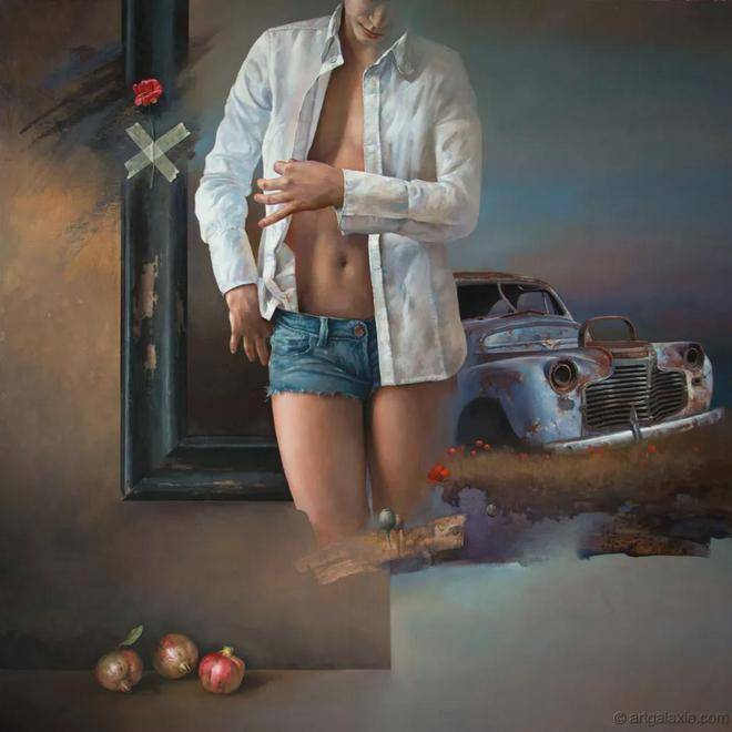 在当代艺术的纷繁图景中,俄罗斯艺术家康斯坦丁·卡切夫(Konstantin Kacheff)如同一名穿梭于现实与虚幻边界的炼金术士,以画笔为坩埚,将现代生活的碎片、人性的褶皱与宇宙的呼吸熔铸成一场震撼心灵的视觉革命。他的作品既是对超现实主义传统的致敬,更是对数字时代人类精神困境的深刻回应——那些逼真到近乎荒诞的具象场景中,藏着关于存在、连结与永恒的终极叩问1。