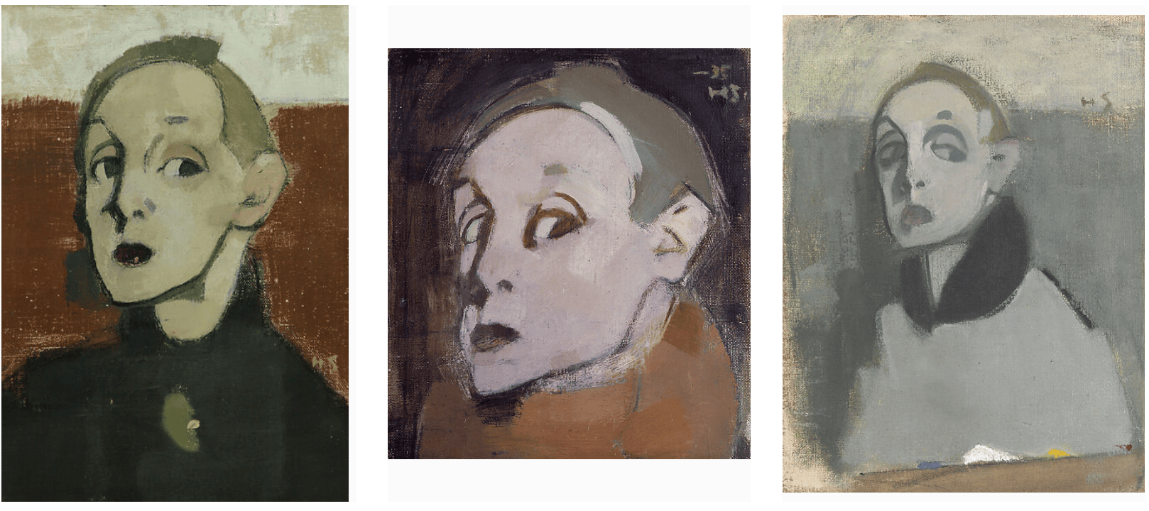 谢尔夫贝克的创作核心始终围绕人物画展开,而其中最具震撼力的,莫过于她一生创作的40幅自画像——这组作品不仅是她艺术生涯的缩影,更是一场跨越数十年的自我审视与生命沉思。策展人迪塔・阿莫里特意将这些自画像集中于最后一个展厅,以沉浸式设计让观众跟随她的笔触,见证一场关于自我、时间与死亡的深刻对话。与当今社会人们热衷通过自拍记录生活、塑造完美形象不同,谢尔夫贝克的自画像从未追求表象的精致与讨好,而是以近乎残酷的诚实,剖开自我存在的本质。