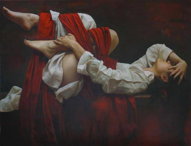 在艺术的浩瀚宇宙中,总有一些作品以其独特的视角、深刻的情感表达以及挑战传统审美的勇气,吸引着世人的目光,甚至引发争议与深思。刘元寿的绘画作品,便是这样一组在艺术与道德、传统与创新之间游走,既令人赞叹又引人深思的佳作。他的作品,尤其是那些以红布和女性形象为核心元素的作品,不仅展现了艺术家深厚的绘画功底与对细节的极致追求,更深层次地触及了人类情感中最细腻、最复杂的一面——忧郁与渴望、束缚与自由之间的微妙平衡。