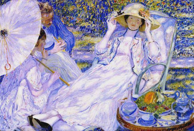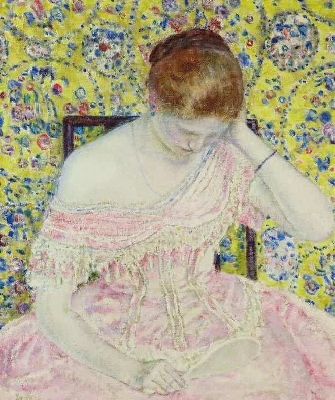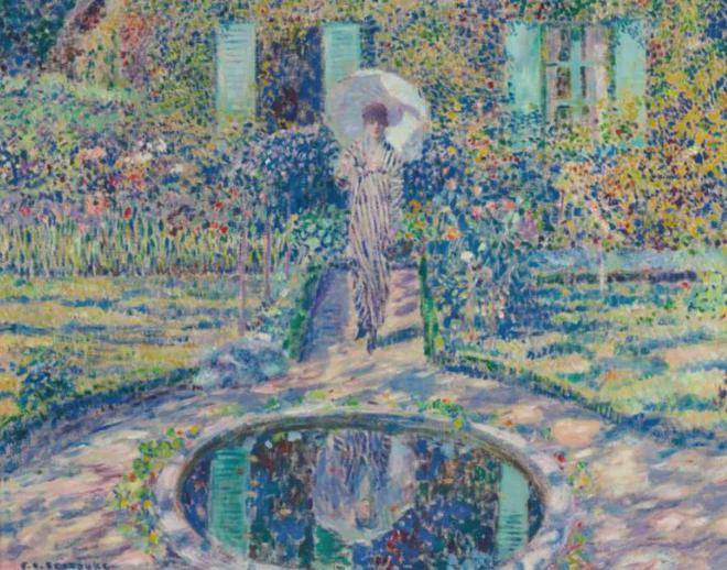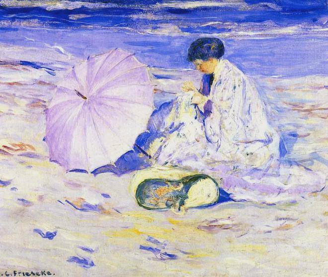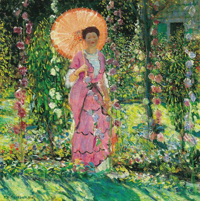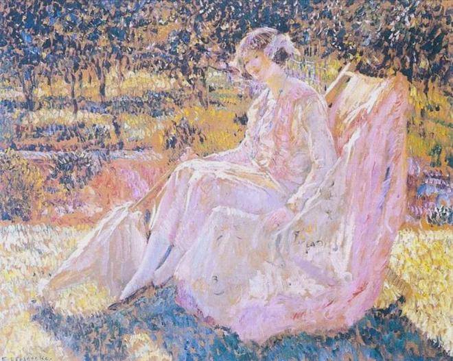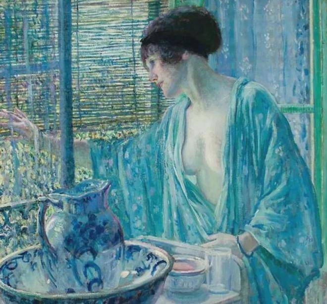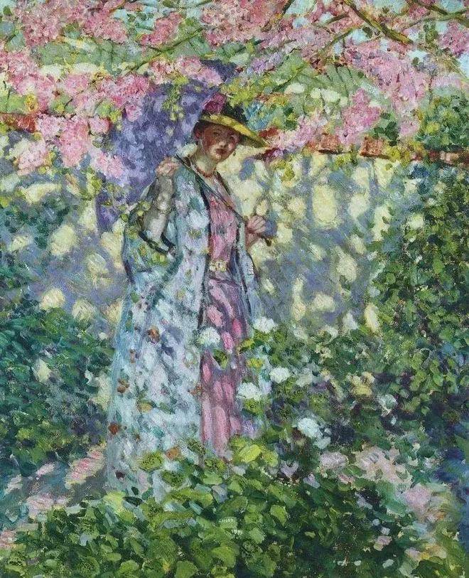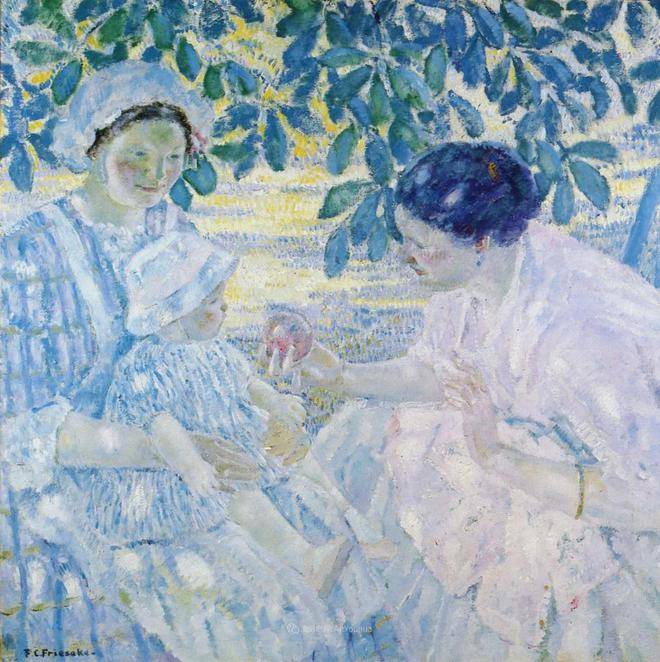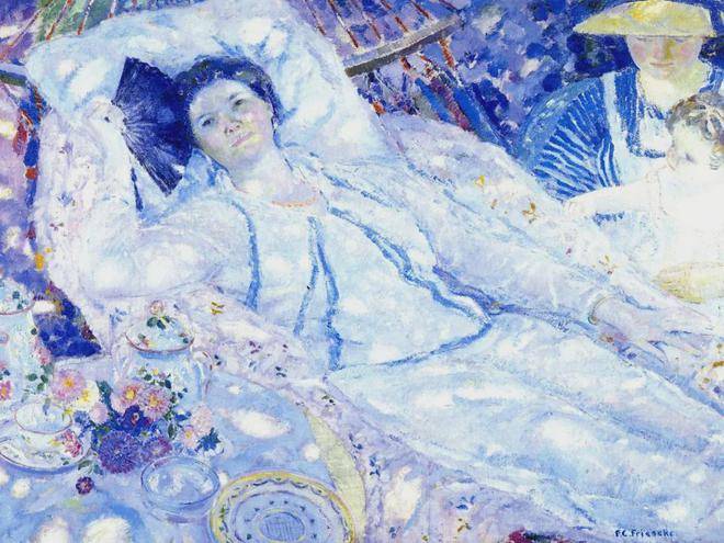 他住在莫奈花园的旁边,即不是莫奈的亲密朋友,也不受莫奈的风格影响,他以画女性主题而闻名,无论是室内还是室外,他是—— Frederick Carl Frieseke