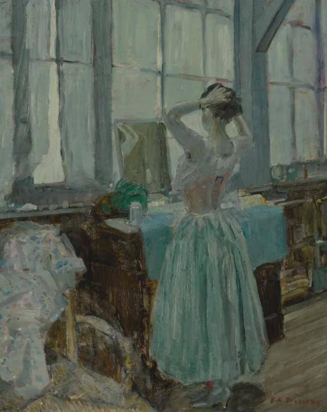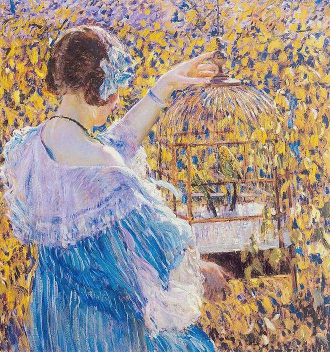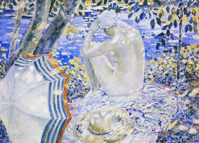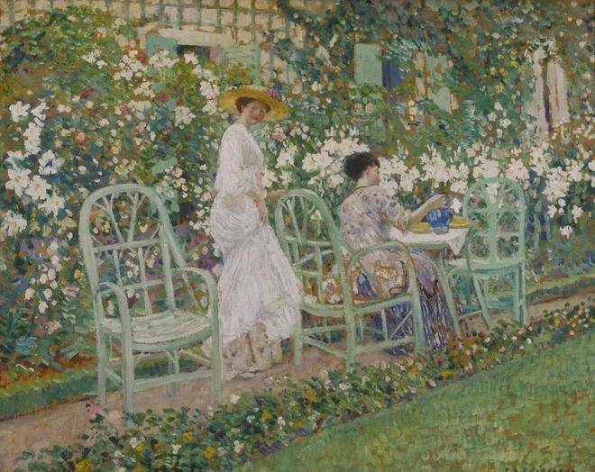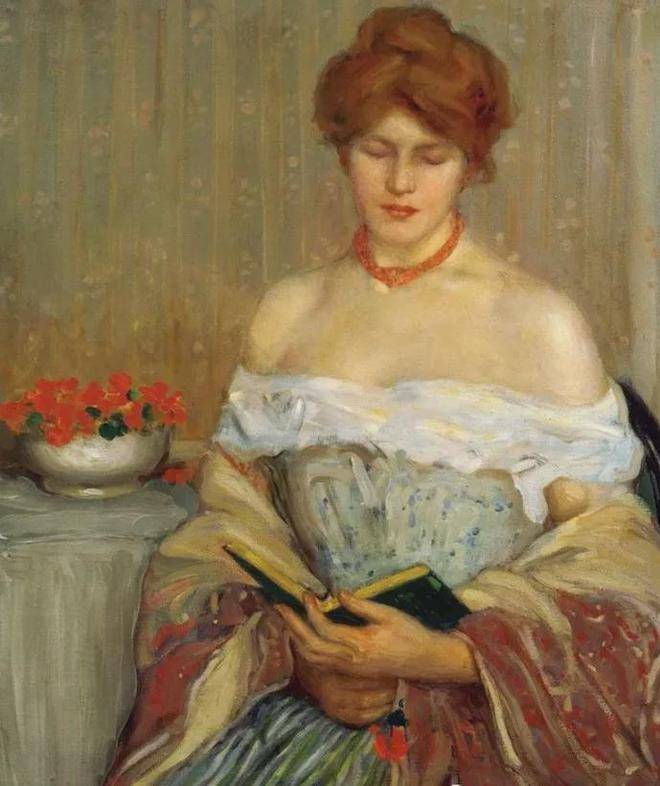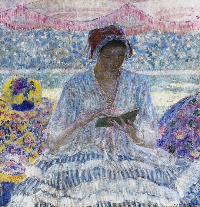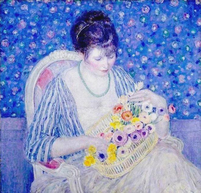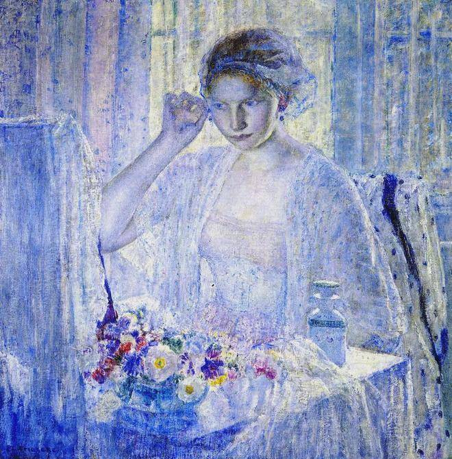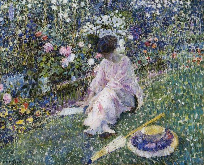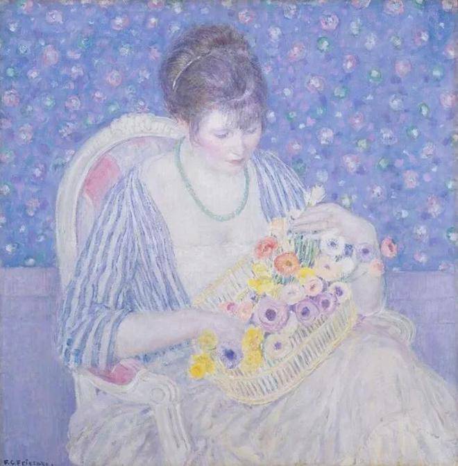 他住在莫奈花园的旁边,即不是莫奈的亲密朋友,也不受莫奈的风格影响,他以画女性主题而闻名,无论是室内还是室外,他是—— Frederick Carl Frieseke