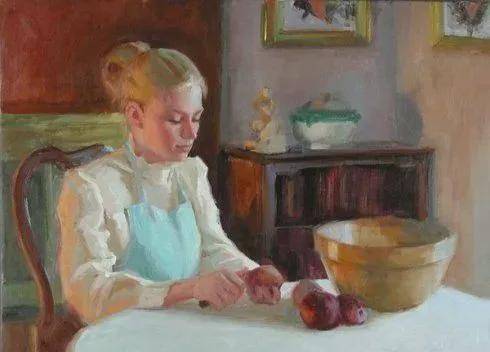 施耐德的艺术核心,在于他对光线超凡的敏感与掌控。他深谙,光线并非仅仅是照亮物体的工具,而是定义体积、塑造情绪、编织故事的无形之手。在他的笔下,无论是女子面颊上那抹转瞬即逝的暖晖,静物苹果表面细腻的高光与深邃的阴影,还是旷野中穿过云层洒下的神圣光束,都超越了物理描述,升华为情感的载体与精神的隐喻。他继承了自伦勃朗以降的大师传统,却并非简单模仿,而是以现代人的视角,将光线提炼为更纯粹、更富音乐性的视觉语言。他的光线拥有质感与温度,能悄然牵引观者的心绪,于静谧中泛起情感的涟漪。