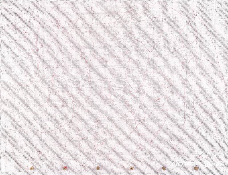 庄普,《红线》,2022,线、丙烯、木线轴/画布, 200 x 260 cm