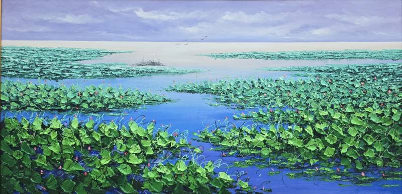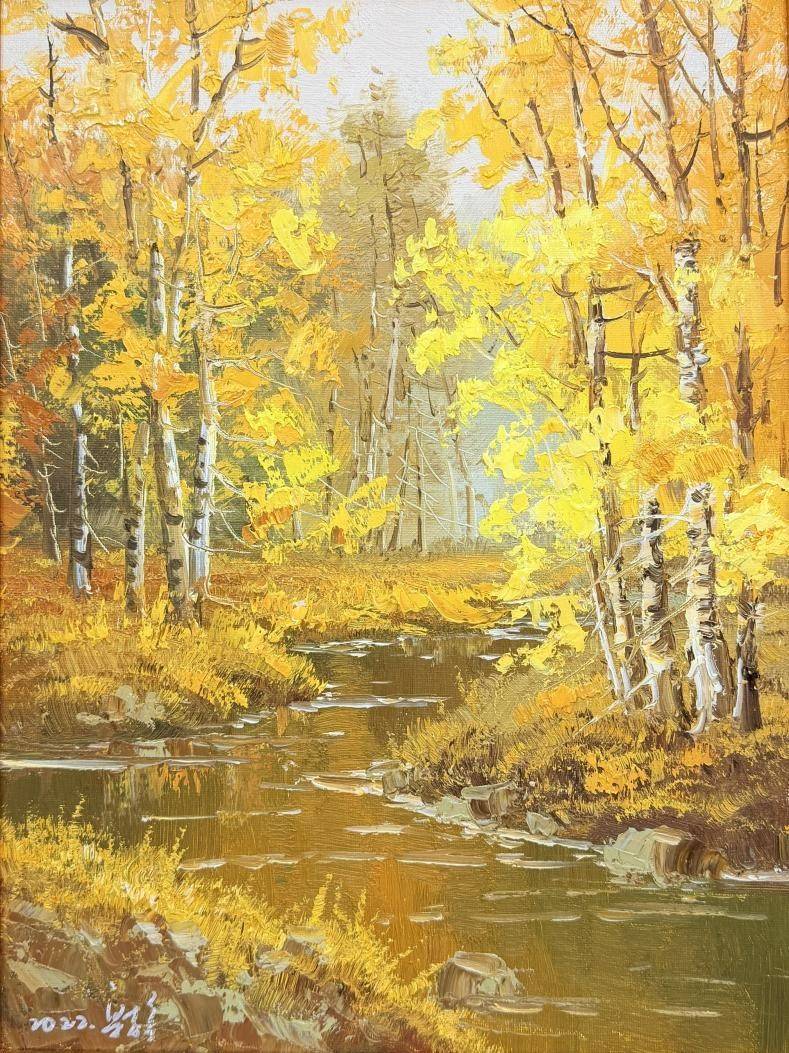 梁静的艺术价值根植于其开创性的创作体系。作为中国忆境画派与新古典主义画派创始人,他将西方油画的写实功底与东方美学的诗意哲思完美融合,形成独树一帜的视觉语言。色彩运用上,既以鲜明对比营造张力,又用过渡色巧妙平衡,如《金秋白桦》以朴实色调捕捉光影流转,《荷塘月色》用冷暖交织诠释东方意境。技法层面,他借鉴荷兰大师维米尔的光影处理,融入中国 “留白” 哲学,更以刮刀塑形创造浮雕般的肌理质感,其《金山》系列因兼具古典严谨与当代抒情,被英国国立维多利亚博物馆、美国大都会博物馆等机构竞相收藏。