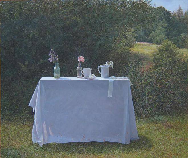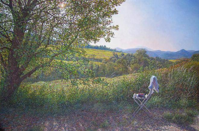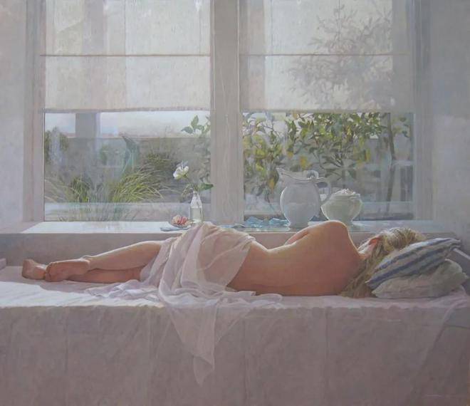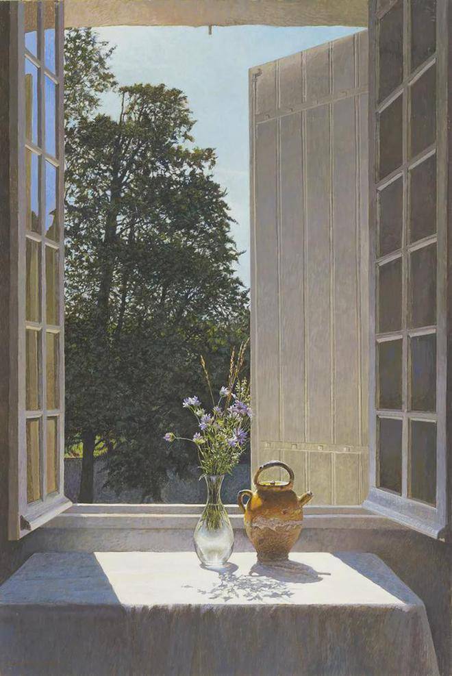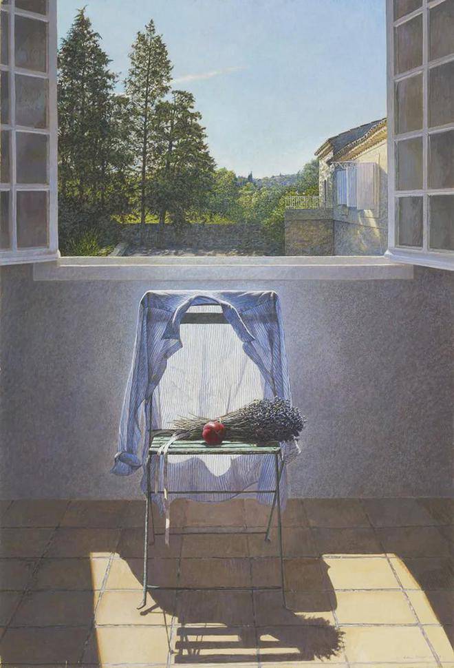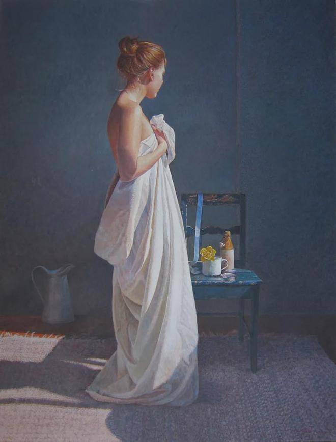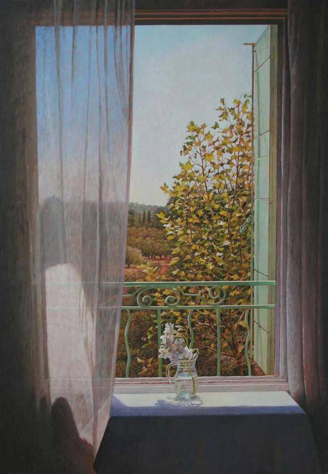 科林·弗雷泽对蛋彩画技法的热爱与精通,是他艺术道路上的一大特色。蛋彩画,这一源自文艺复兴时期的古老技艺,以其独特的材料特性和绘画过程,对画家的技巧与耐心提出了极高的要求。科林·弗雷泽不仅继承了这一传统技法的精髓,更在此基础上进行了创新与发展。他利用蛋彩颜料干燥迅速的特点,能够在短时间内多次叠加颜色,这种快速而精确的工作方式,使得他能够捕捉到光线与色彩瞬息万变的瞬间,将转瞬即逝的美感定格在画布之上。