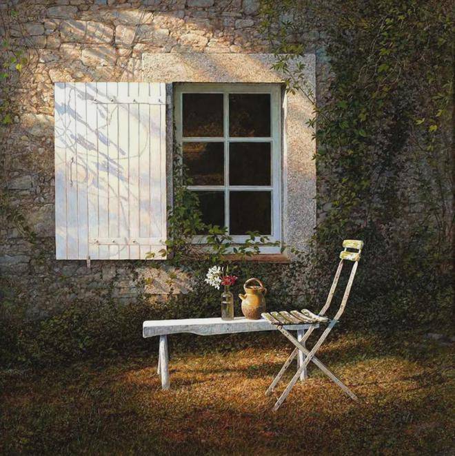 科林·弗雷泽的作品之所以引人入胜,不仅仅在于其精湛的技术和独特的光影处理,更在于它们所传递的深刻情感。他的画作往往能够激发观者内心的共鸣,让人在欣赏的同时,感受到一种超越视觉的触动。在静物画中,那些看似平凡的物品,在他的笔下被赋予了生命,它们不再是冷冰冰的存在,而是承载着故事与情感的载体。而在风景画中,科林·弗雷泽则通过光影的巧妙运用,营造出一种宁静而又略带忧郁的氛围,仿佛每一片树叶、每一缕阳光都在诉说着自然的秘密,让人在喧嚣的尘世中找到一丝心灵的慰藉。