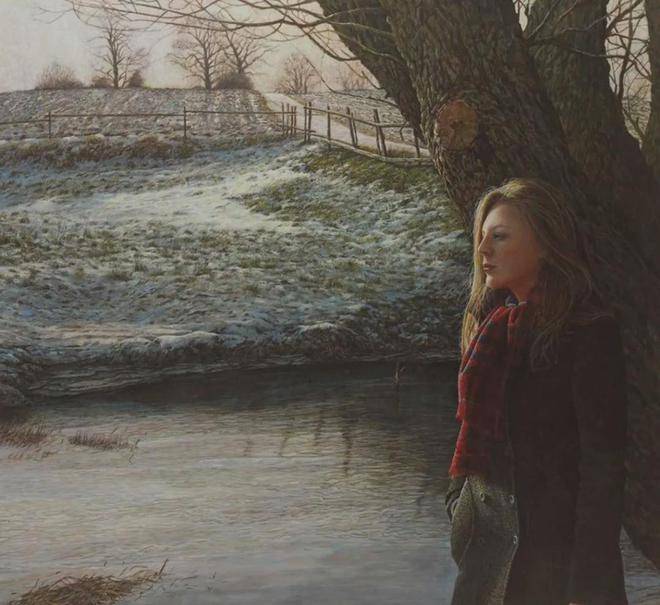 在创作过程中,科林·弗雷泽会精心准备画布,确保其表面平滑且吸水性能适中,以便更好地承载蛋彩颜料。他通常会先以浅色打底,逐步加深色彩,通过层层叠加,构建出丰富的色彩层次和细腻的纹理效果。这种技法要求画家具备极高的色彩感知能力和控制能力,而科林·弗雷泽正是凭借其深厚的艺术功底,将这一古老技艺发挥得淋漓尽致,创造出了一幅幅既传统又现代、既细腻又充满力量的作品。