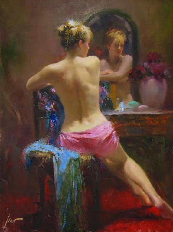 皮诺·德埃尼的作品风格独特,具有极高的辨识度。他擅长运用细腻而流畅的笔触,将人物的形象和情感刻画得栩栩如生。在他的画作中,人物的姿态、表情和动作都充满了生命力,仿佛下一秒就会从画布中走出来,与观者进行亲密的互动。