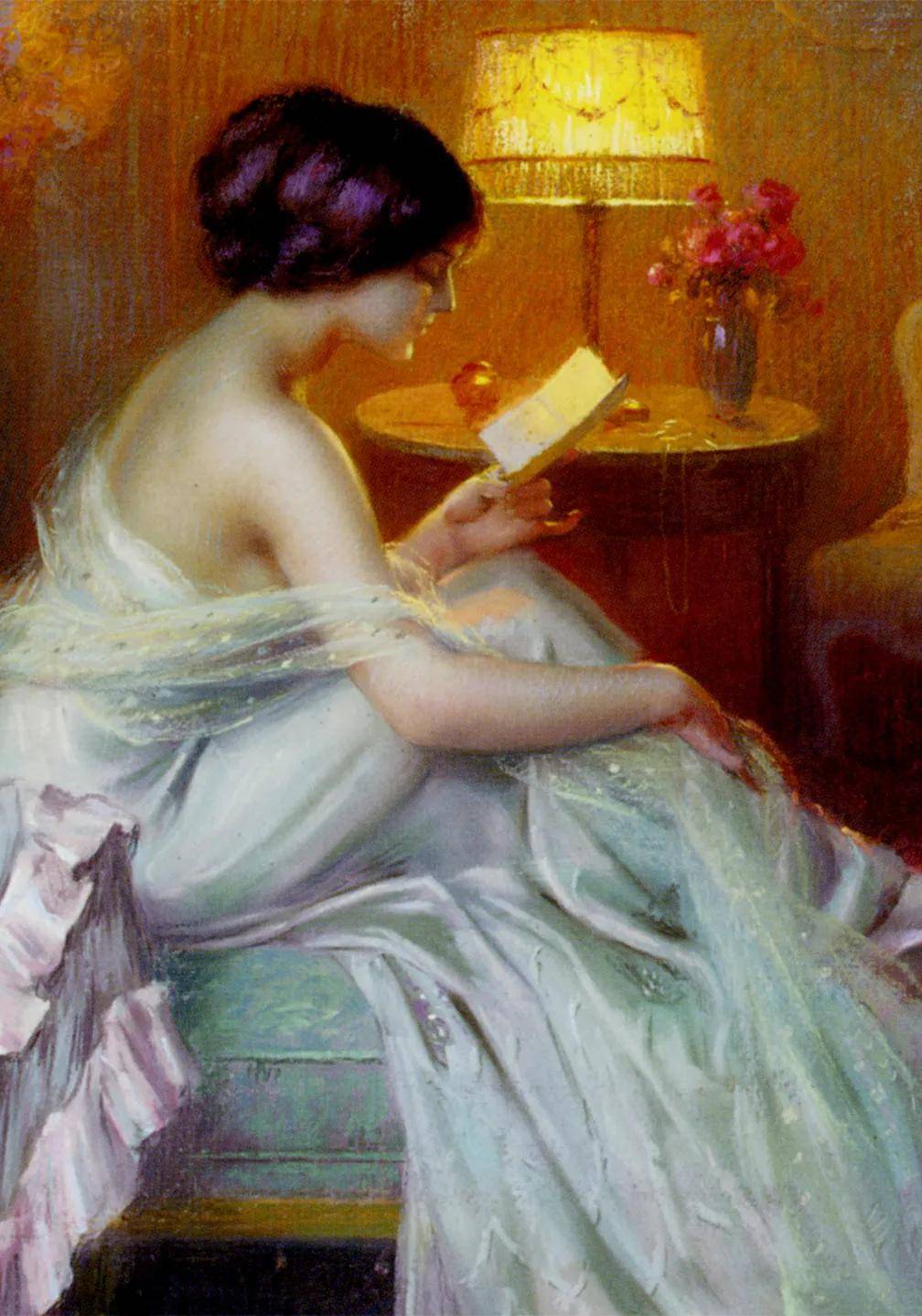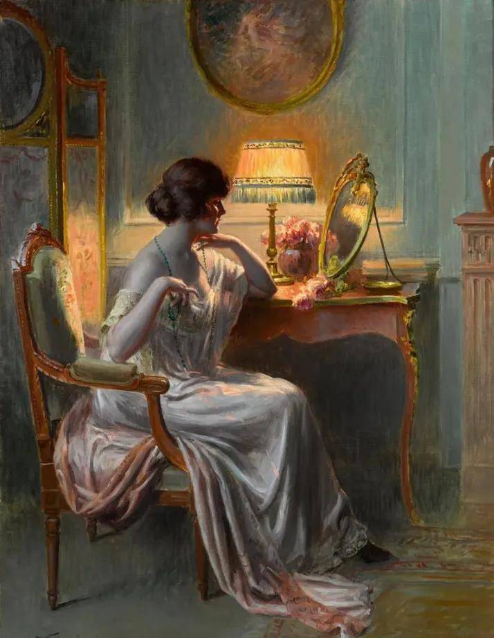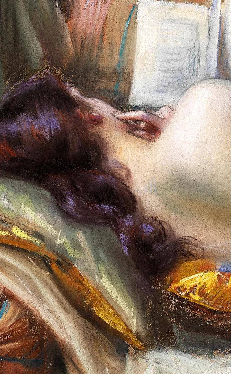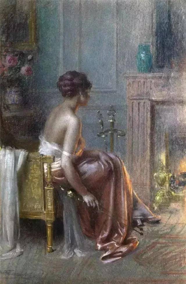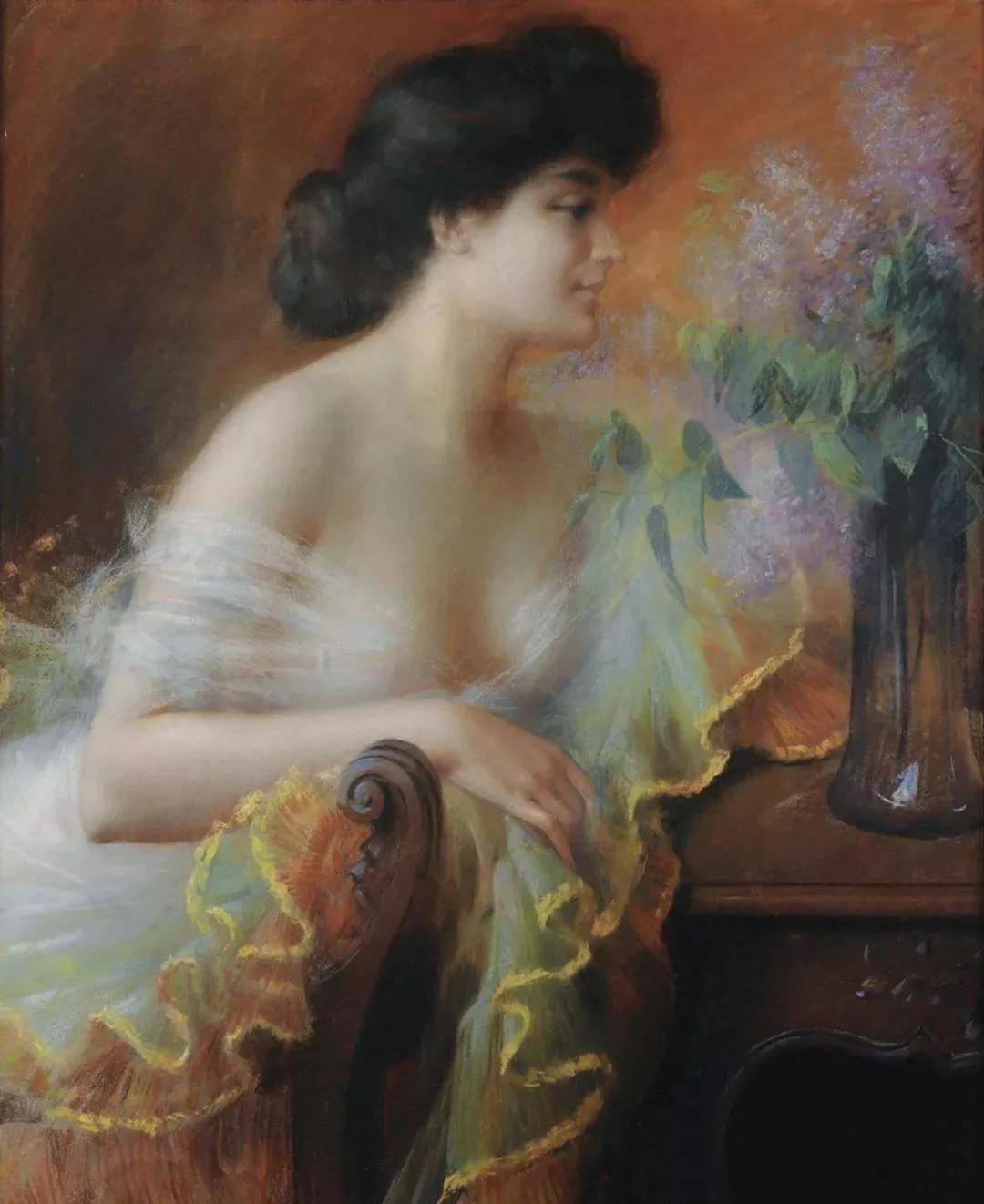 Delphin Enjolras宛如一颗散发着独特光芒的星辰,以其细腻而深情的笔触,在画布上勾勒出一个个令人心醉神迷的场景,尤其以描绘年轻女性的亲密肖像而闻名于世。他的作品仿佛是一扇扇通往静谧而美好世界的窗户,让观者得以窥探那些平凡生活中的诗意瞬间。