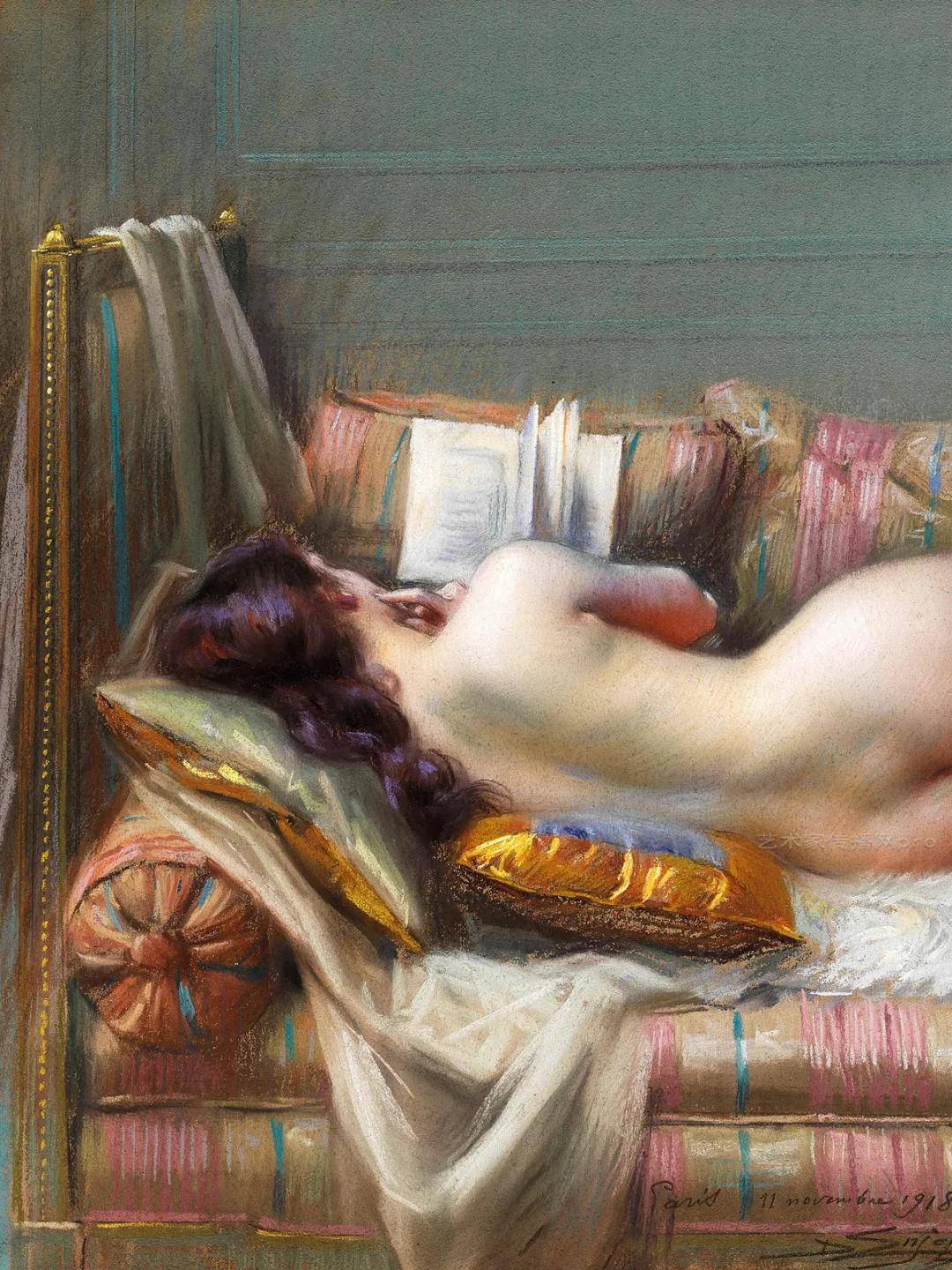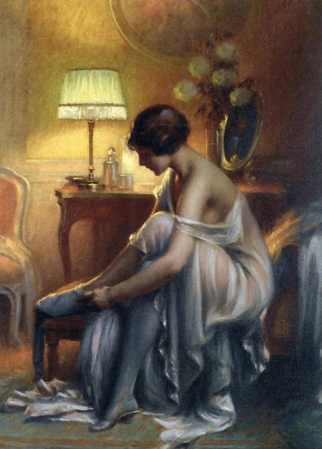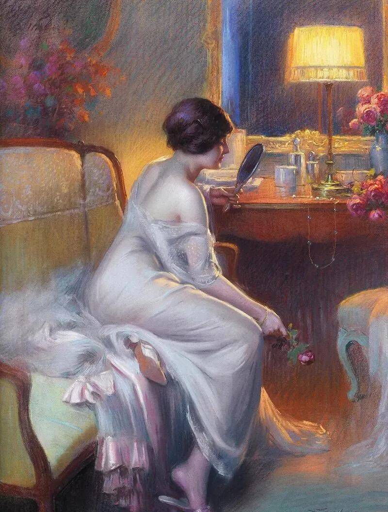 Delphin Enjolras宛如一颗散发着独特光芒的星辰,以其细腻而深情的笔触,在画布上勾勒出一个个令人心醉神迷的场景,尤其以描绘年轻女性的亲密肖像而闻名于世。他的作品仿佛是一扇扇通往静谧而美好世界的窗户,让观者得以窥探那些平凡生活中的诗意瞬间。
