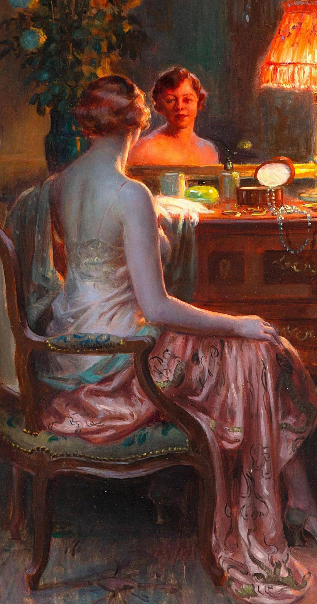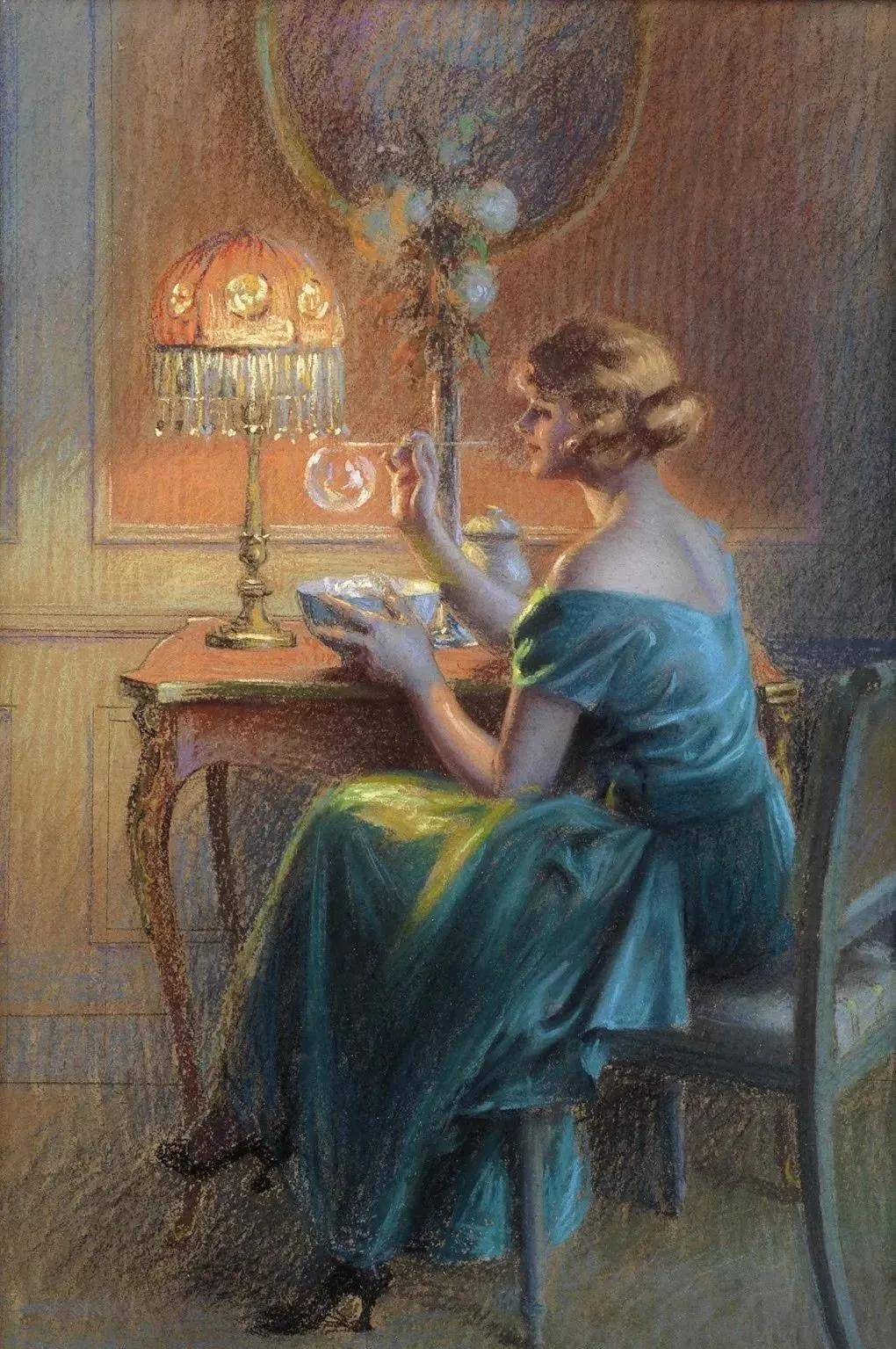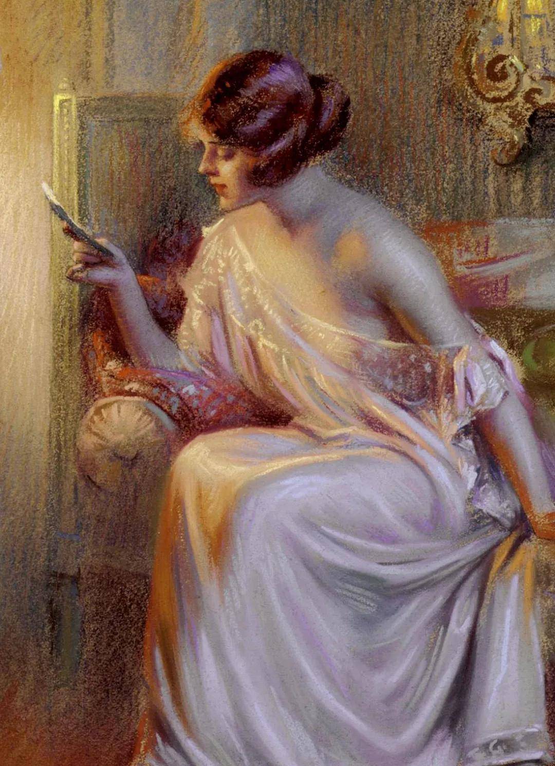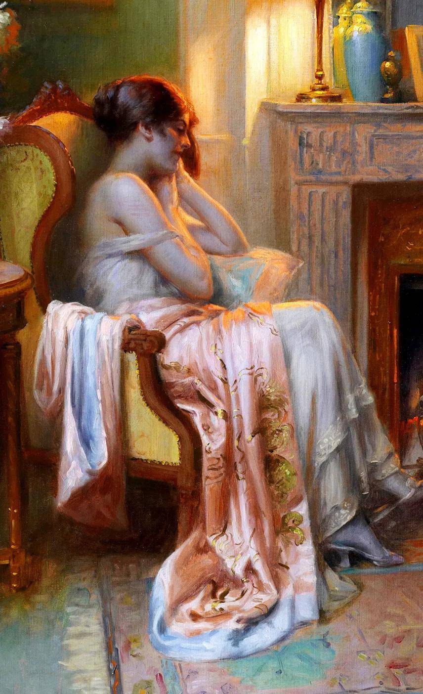 Delphin Enjolras宛如一颗散发着独特光芒的星辰,以其细腻而深情的笔触,在画布上勾勒出一个个令人心醉神迷的场景,尤其以描绘年轻女性的亲密肖像而闻名于世。他的作品仿佛是一扇扇通往静谧而美好世界的窗户,让观者得以窥探那些平凡生活中的诗意瞬间。