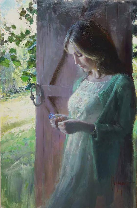 沃利戈夫的作品以描绘美女而闻名。他笔下的女子,美得仿佛透明,纯洁与芳香的气息扑面而来,令人难以忘怀。在他的画布上,每一位女性都散发着独特的魅力,她们或娇羞含笑,或优雅端庄,或灵动俏皮,每一个表情、每一个姿态都被他刻画得栩栩如生。