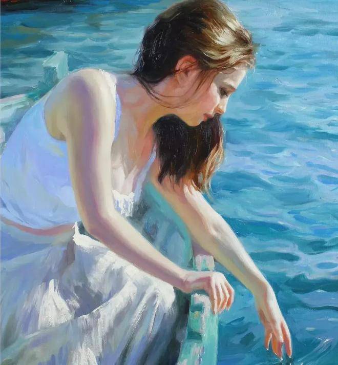 他的作品具有鲜明的油画特质,写实的风格让画面仿佛具有了生命。他擅长运用独到的油画肌理,通过细腻的笔触和丰富的色彩层次,将人物的神韵和情感展现得淋漓尽致。从他描绘的人物中,我们能够真切地感受到他内心深藏的爱。这份爱,既是对女性的赞美与欣赏,也是对生活中美好事物的热爱与追求。