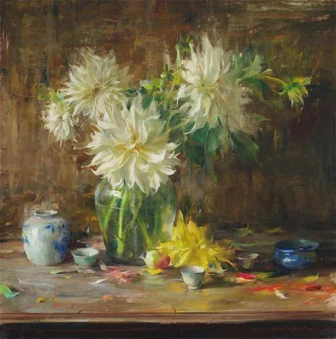 尤为深刻的是,胡光作品中的“美”与“善”,浸润着东方哲学特有的内省与和谐。西方印象派的美学革命,常与现代社会变迁、个人主义兴起紧密相连,其笔触中跃动着时代的喧嚣与个体的感官解放。而胡光的至善至美,却常呈现为一种经过沉淀的宁静、一种历经沧桑后的圆融。静物画中的一花一瓶,不仅有其物质形态的优雅,更仿佛承载着时光的凝思与存在的安然;风景画中的一片秋林、一池萍碎,除了光色变幻,更透露出对自然法则的顺应与对万物轮回的静观。这其中,或许有佛教禅宗“当下即永恒”的观照,有道家“天人合一”的宇宙情怀,也有儒家对中庸和谐之境的追求。他的印象派语言,因而获得了一种东方文化特有的精神厚度与哲思深度。