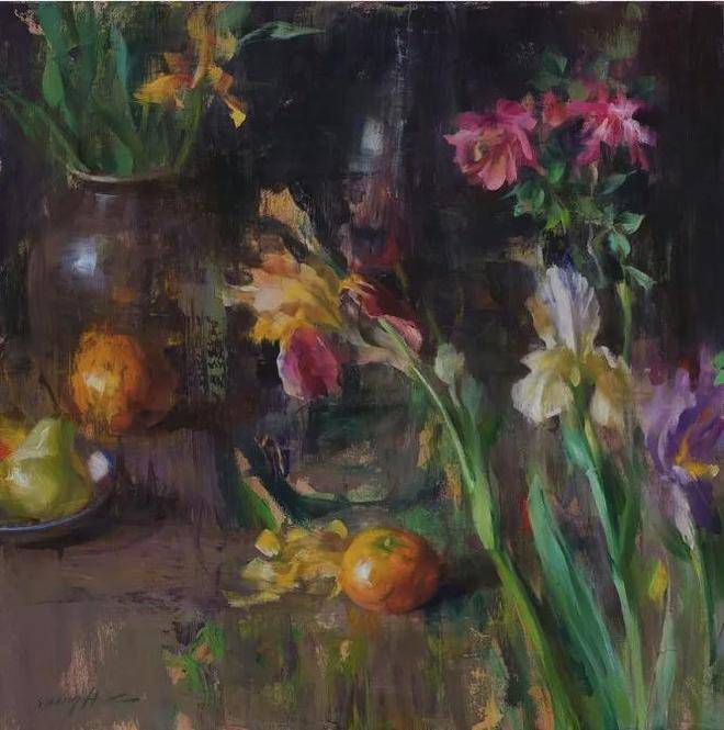 印象派自诞生之初,便致力于捕捉瞬息万变的光影与流动的现实。莫奈的干草堆、雷诺阿的舞会,无不是对“此刻”的狂热礼赞。胡光深谙此道,他的色彩同样敏感而颤动,笔触同样自由而跃动。然而,细观其作,会发现一种微妙而根本的位移:西方印象派往往强调光作为“主体”,物体在光的冲刷下溶解、重构;而在胡光的画布上,光更像一位谦逊的访客,悄然弥漫、渗透,最终与物象本身的气息融为一体。他描绘的花卉、静物、风景,轮廓或许因光而朦胧,内里却始终凝聚着一股静定的“气”。这非写实却更近“真质”的追求,让人想起中国画论中“气韵生动”的至高准则——不求形似,但求传达对象内在的生命韵律与精神本质。他的色彩交响中,鸣响的是谢赫“六法”的回音。