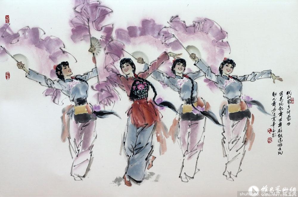陈玉先是 我们的老朋友,也是我的老战友。他是军报老的美术部负责人。他成名很早,很早就在报刊发表插图、速写,军队生活的绘画作品等,很有知名度。 近年来,他又专门在水墨画舞蹈方面作了专门创作研究,成绩很大,这次画展就是他的56个民族水墨舞蹈全面展示。舞蹈题材不是太好画,因为舞蹈动作本身比较 大,很多人都画过,关键是能够出新,有画家的创意,我觉得他处理的都非常好,有的一个人,有的一组人,有的双人舞,这就把少数民族的风情展示的淋漓尽致, 而且笔墨上也非常纯熟,我觉得非常好。