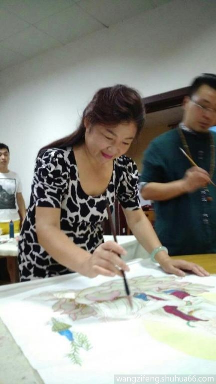 宋婷的观音和秋韵的牡丹,惟妙惟肖,栩栩如生;王紫凤写意荷花兰花挥洒自如,泼墨精当;夏江峰书画兼能,左右逢源;何自宽的颜体行楷大刀阔斧,笔笔见功。每幅作品无不受到大家啧啧称叹!