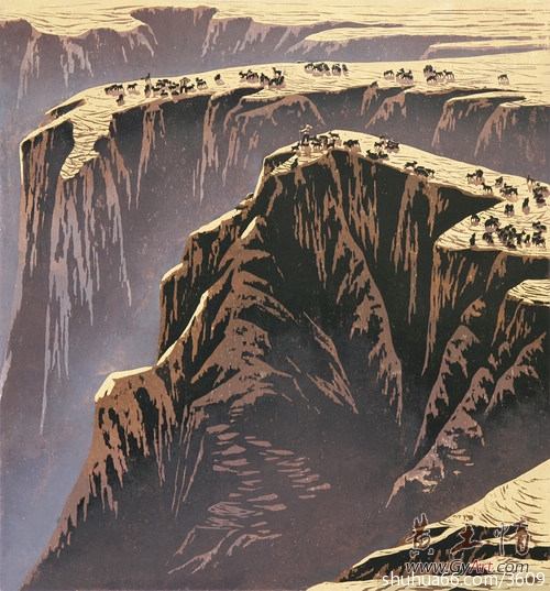 攀上六盘山道,看那道道山梁,一层层梯田,黄土地的自然美与人的功绩天人合一,呈现出五彩的旋律;黄土丘陵腹地起伏的山塬间,重重叠叠的羊肠小道,气势恢宏的沟壑,那蜿蜒迂回的曲线,敦厚凝重的色块,胸中油然荡起粗犷高亢的“山花儿”,这足以使人陶醉。时代的遗迹与进步形成的反差极具趣味地给人以启示。民族民间的文化积淀丰富了营养。艺术的根基就在这金黄的高山厚土,发掘黄土地无限的和自由的美,奉献给宽厚的黄土地。