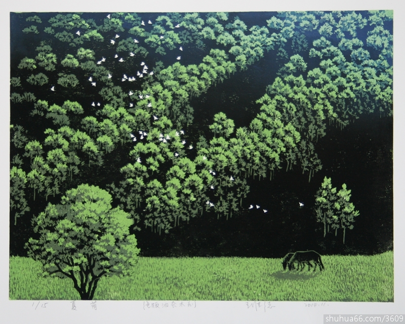 夏荫-《山林四季》之二 45×34cm 绝版油印套色木刻 2014年