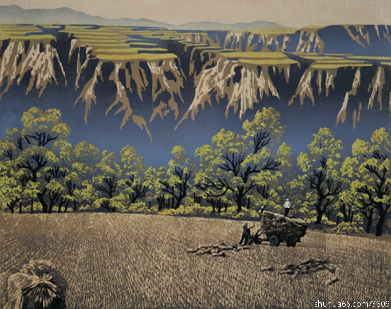 【每周一版画】第215期《塬上金秋之三-入仓》