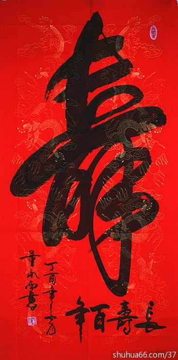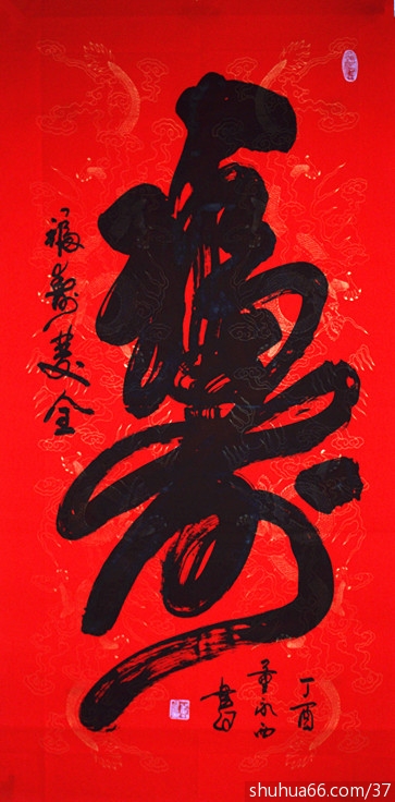 董永西书画组合中堂新作品74(榜书大寿)