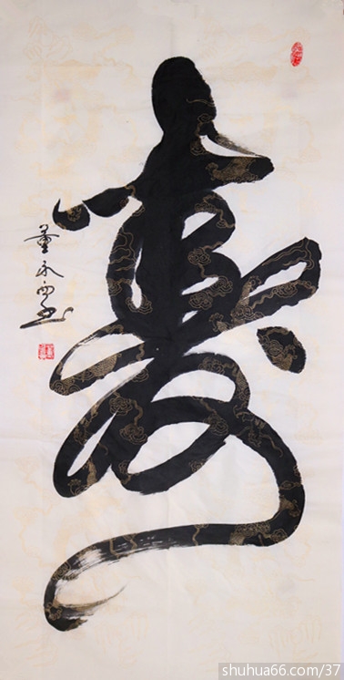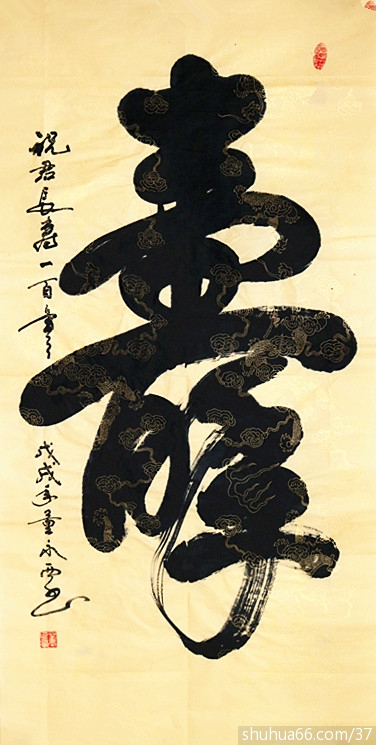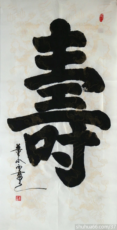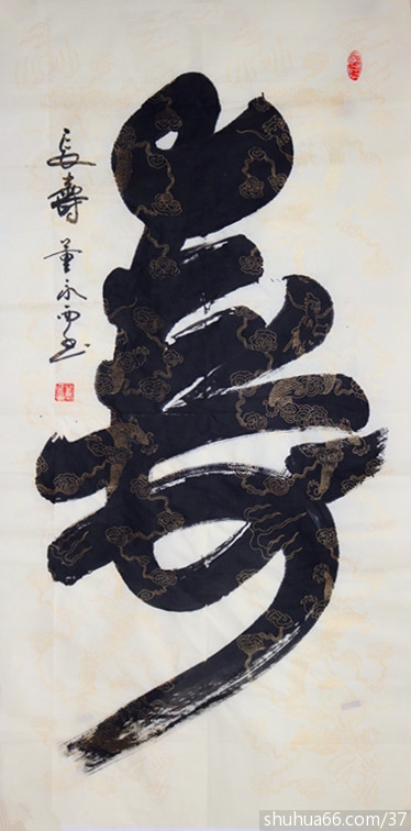 董永西书画组合中堂新作品74(榜书大寿)