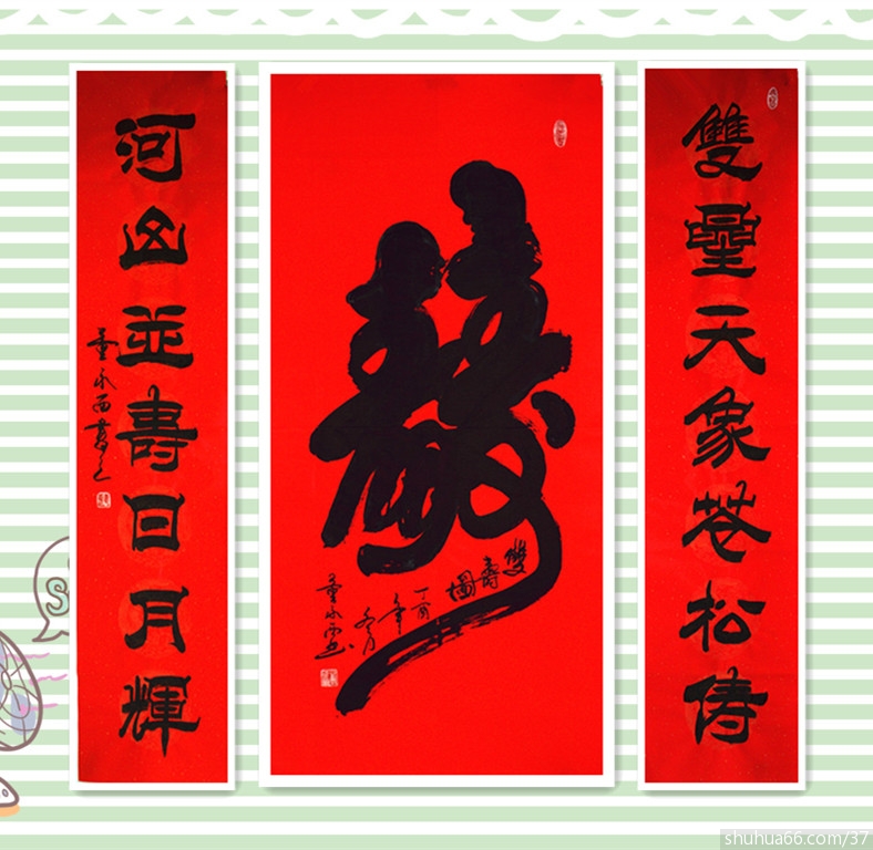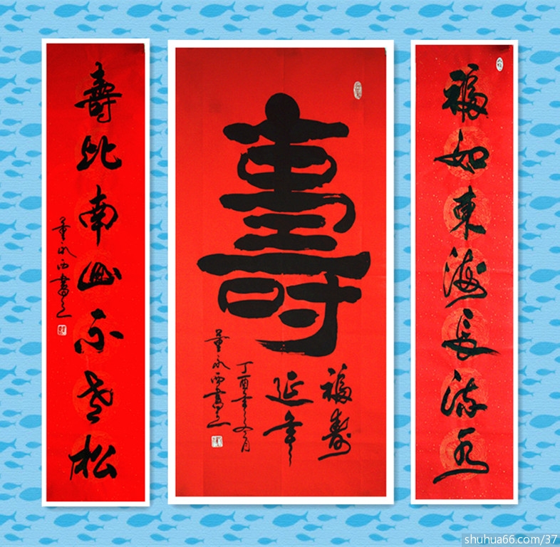 董永西书画组合中堂新作品74(榜书大寿)