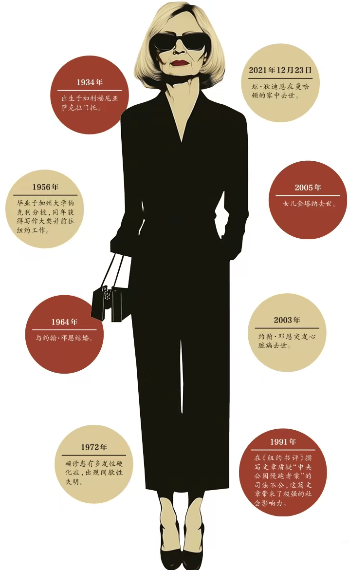 琼·狄迪恩的人生充满魅力,同时也非常神秘。这位作家长期极少透露私人生活相关的内容,只在后期的部分纪录片与采访中,才让观众与读者看到她个人生活的冰山一角。由于琼·狄迪恩极具个人魅力的形象,这些年来,人们不断从传记、新资料和新采访中挖掘着狄迪恩的人生。其中,2024年的一本传记和2025年出版的狄迪恩私密笔记更是披露了大量前所未知的内容,这些让狄迪恩的人生显得更加复杂。