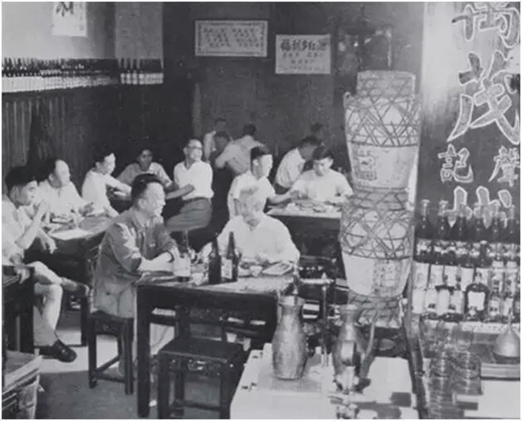 老城厢也有深巷酒香,陈存仁在《银元时代生活史》一书中写道:“酒店,南市很多,是专门供应热酒为主,门前都摆满了作为下酒的小菜,不外乎发芽豆(俗称独脚蟹)、咸水毛豆、盐紧豆、豆腐干、拌海蜇、拌乌笋等,随客取用,每碟不过铜元二三枚。在这类酒店中,约三五知己小饮,要是由一个人会钞的话,也不会超过大洋一元。如此看来,在那时的上海南市的人,生活是很简单而舒适的。”城隍庙是市民文化的原点,年节尤为热闹,周边有叶森泰、王三和、福露桢、泰和信等,经营作派饶有古风。旧校场路的源茂泰还允许客人划拳,有时连酒保也会参与进来,气氛煞是热闹。董家渡的王恒裕是老城厢资格最老的一家,他们欢迎客人赊账,年终结账时还会送客人一瓶好酒答谢照顾。