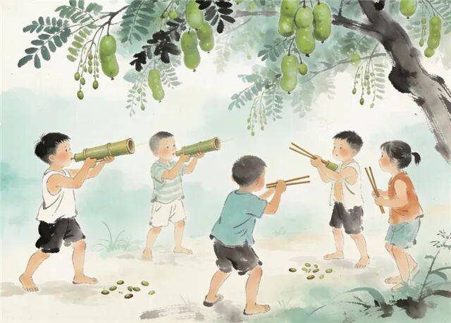 闹腾的夏天,原本就该属于孩子们。楝花谢了,枝头结出一串串青色的果子,初时小巧,渐渐饱满,圆滚滚的像一颗颗微型青枣,结结实实地垂在枝头。我们叫它“楝果”,这楝树,便是我们这帮小朋友整个夏季的“军火库”。