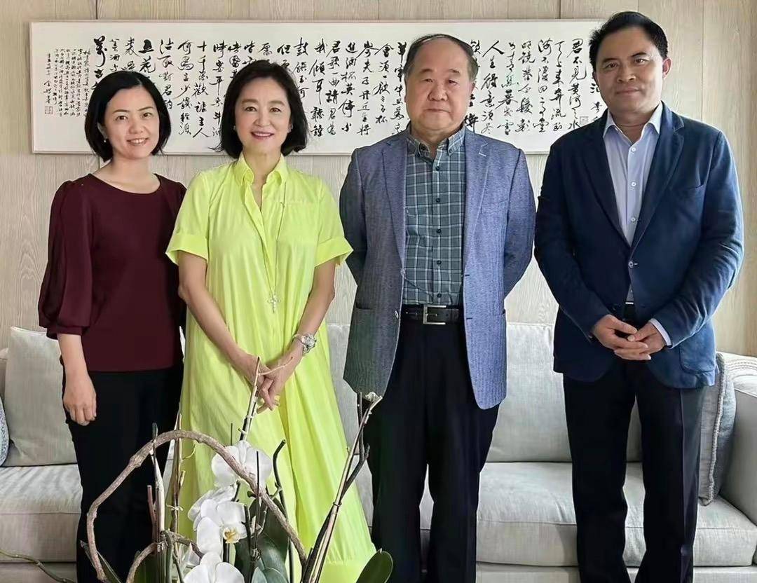 当天,68岁的林青霞身着一袭温暖的黄色服装,整个人散发出明媚而年轻的气息,她脸上洋溢着真挚的笑容,与莫言并肩合影,仿佛时光在她身上停驻。莫言则显得一如既往的严肃,双手背在身后,旁边的林青霞则轻松自如,笑意盈盈。站在莫言旁边的,是香港另一位作家,他也是此次邀请莫言到港参加活动的关键人物。