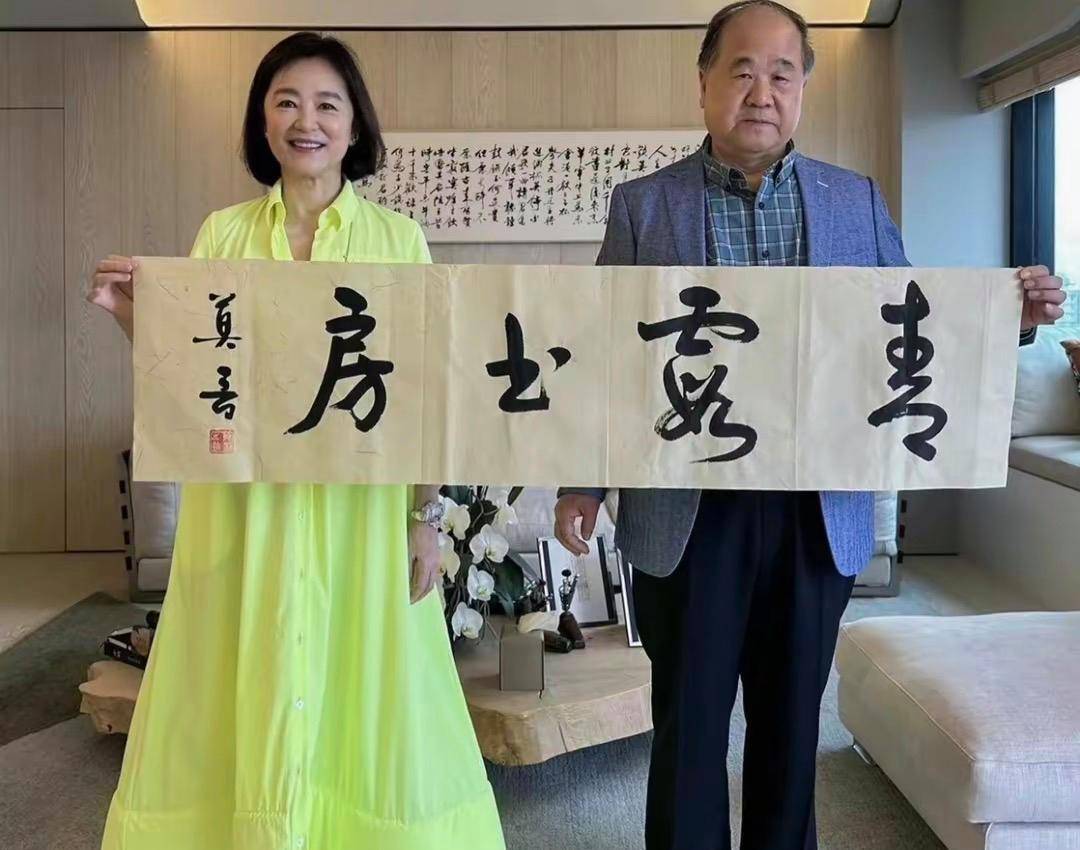 作为山东老乡,莫言在林青霞家中作客,自然流露出亲切之情。他当场为林青霞题写书法——青霞书房四个字,字里行间蕴含浓浓情谊。面对镜头,莫言略显拘谨与严肃,而林青霞则依旧保持她特有的自然笑容,亲和力十足。