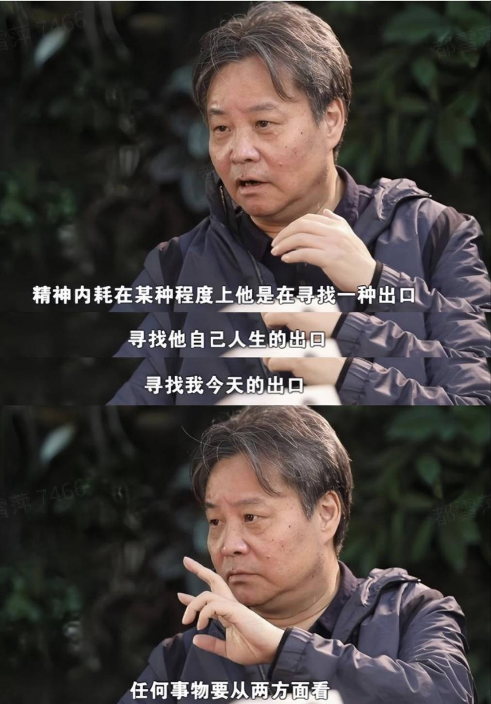 关于精神内耗,余华给出了积极的理解:“精神内耗在某种程度上他是在寻找一种出口,寻找他自己人生的出口,寻找我今天的出口,任何事物要从两方面看。你只有遇到困难,你才能够前进,不可能不遇到困难就能够往前走的,而且困难往往会造成人的精神内耗,我们从积极的角度谈论的话,精神内耗不是一个坏事,内耗其实就是希望自己做得更好一点,这种情况才有内耗,我写作了40年内耗了40年,会走出来的。”