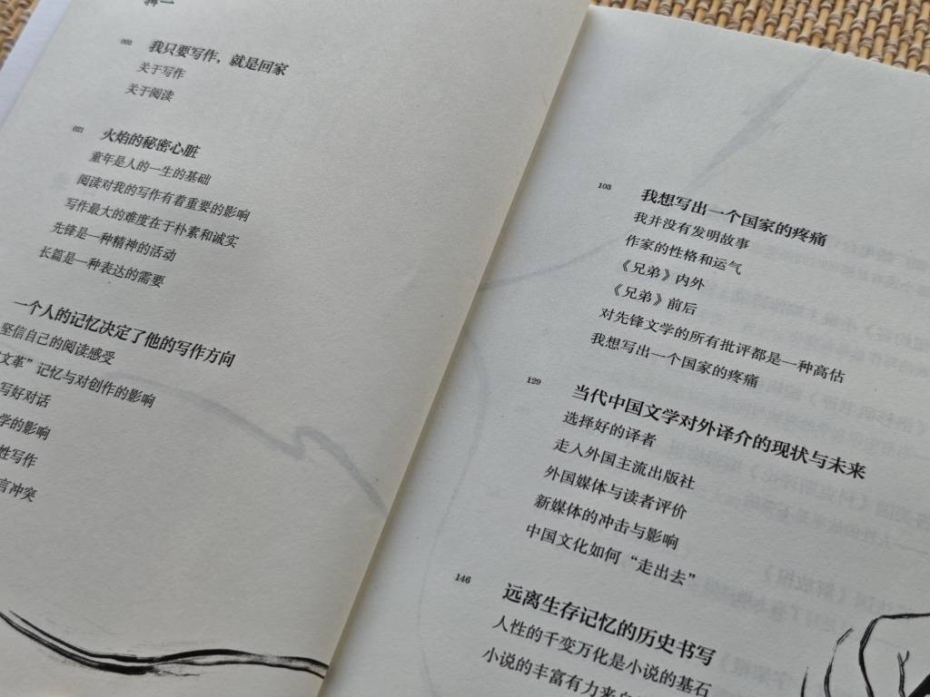 书中的26场谈话汇集了他接受美国《纽约客》、法国《解放报》、意大利媒体等多国主流媒体以及中国的文学评论家们的访谈实录,围绕着“成长”“创作”“阅读”“人生”等主题交错展开。