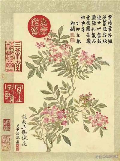 和荼蘼一样,楝花也抓住历代诗人的眼球。“小雨清风落楝花,细红如雪点平沙。槿篱竹屋江村跃,时见宜城卖酒家。”(宋·王安石)“细雨茸茸湿楝花,南风树树熟枇杷。”(明·杨基)“紫雪冥蒙楝花老,蛙鸣厅事多青草。”(清·曹寅)