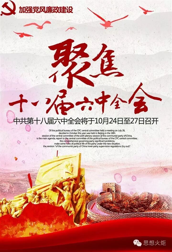 2016年7月26日中共中央政治局召开会议,决定今年10月在北京召开中国共产党第十八届中央委员会第六次全体会议