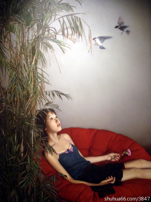 l:当然那是我崇尚的一种精神,我是说在当今这个时代,人们总是打一枪换一个地方,太缺古代人的轴劲,缺近乎于僧侣做事的态度。至于我,尽量专注于某件事,用尽量完美的传统手段、以人文理性的态度寻找与当代生活和感情交流的可能。投入精神与感情是把事情做到家的必要条件。同样,维米尔的画面有一种凝重,这种凝重好象时间到那儿“咕咚”!不动了!而我们看看布歇,他的秋千都是晃动的。可你走到维米尔的画前,“咕咚”!感觉一切都凝在那儿了,这种东西我觉得很有一种永恒感,我的内心很贴近这种感觉。