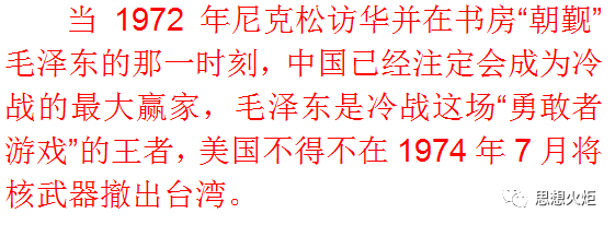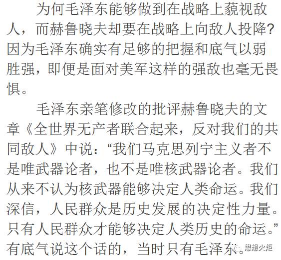 拿“1958年毛泽东炮击金门”与“1962年古巴导弹危机”对比,可鲜明看出,毛泽东是如何的伟大,赫鲁晓夫是如何的愚蠢,而美国则是如何的狡诈。苏联的命运与中国的命运此后如此之不同,盖因源此。