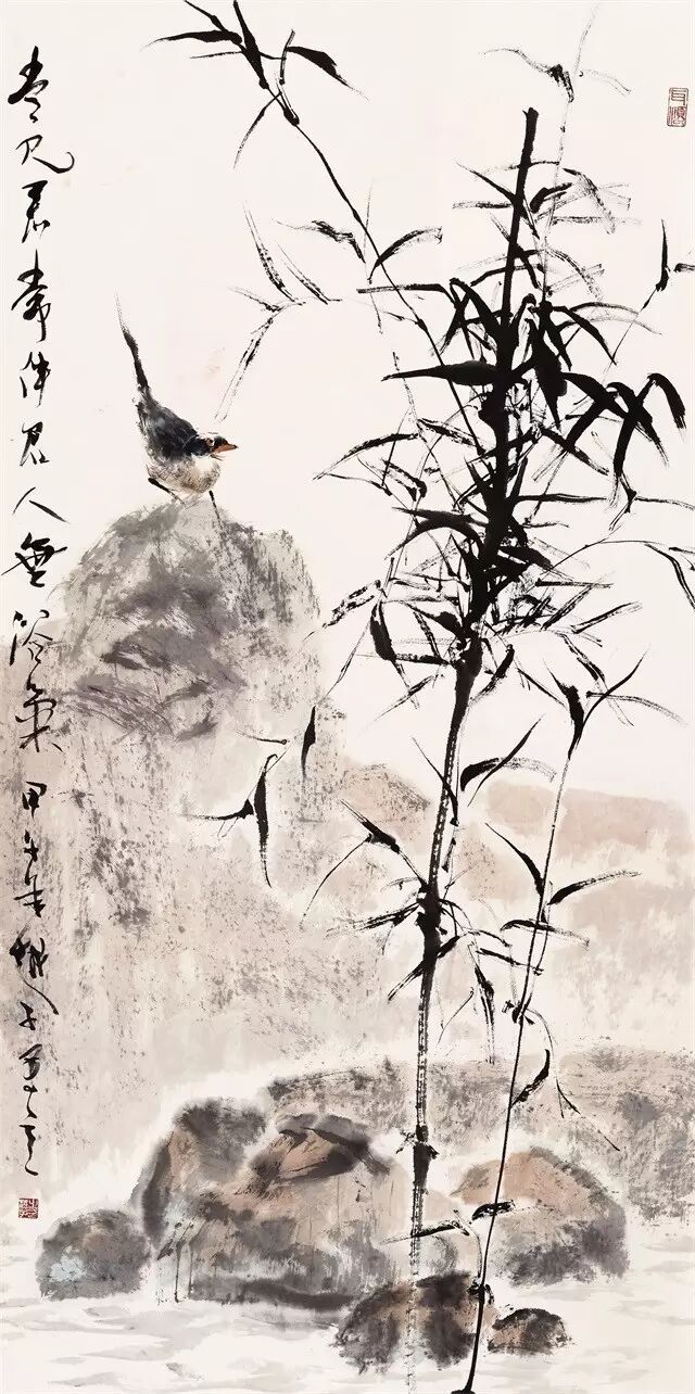 郑板桥赞扬徐渭大写意雪竹,有不似之似之妙。而批评当时有些学画者“不肯刻苦”,便“浓枝大叶”的画起大写意来,指出这是“欺人瞒自己,再不求进,皆坐此病” 。这番话,对今天绘画创作仍有现实意义。凡有成就之写意画家,无不在工笔画上下过功夫。一方面,打下扎实基础;另一方面,工笔画作为一个画种,必须深入细致地表现对象,首先懂得“作画只是个‘理’字最要紧”。例如,画竹,若对竹子的组织结构、形象特征、生长规律不熟悉,既画不好工笔画,更画不好写意画,因为缺的是一个“理”字。观越子大写意花鸟,狂怪而不失其理,粗卤而见其笔墨。其工笔花鸟也画得秀劲绝伦,真趣盎然。可以这样说,无陆氏昔日之工笔花鸟画,也就无其今日这大写意花鸟画。