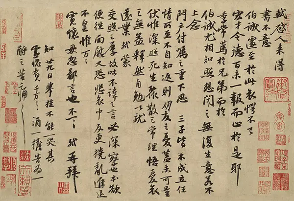 北宋文人陈慥,字季常,与苏轼友善,两人书信来往甚频,《一夜帖》即为其中之一。《一夜帖》,又名《季常帖》、《致季常尺牍》。《墨缘汇观》、《石渠宝笈续编》著录。