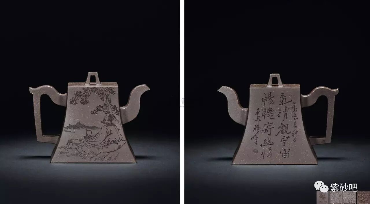 我认为搞紫砂壶造型设计,一定要有节奏感,作品的节奏感越强,紫砂的韵味越足。只做小的,放不开,如同绣花一样;做大的,能掌握作品的气度、骨架。如同古代的青铜器一样,它象征的是一种权利,所以它的造型有气度、有力度,有一种不可动摇的霸气。我把古代青铜器的这种霸气吸收到紫砂大器的造型上来,紫砂大器的造型也要有霸气、有力度。要大气,就要掌握它的韵律、节奏,再加上平衡、和谐,就产生了韵味。