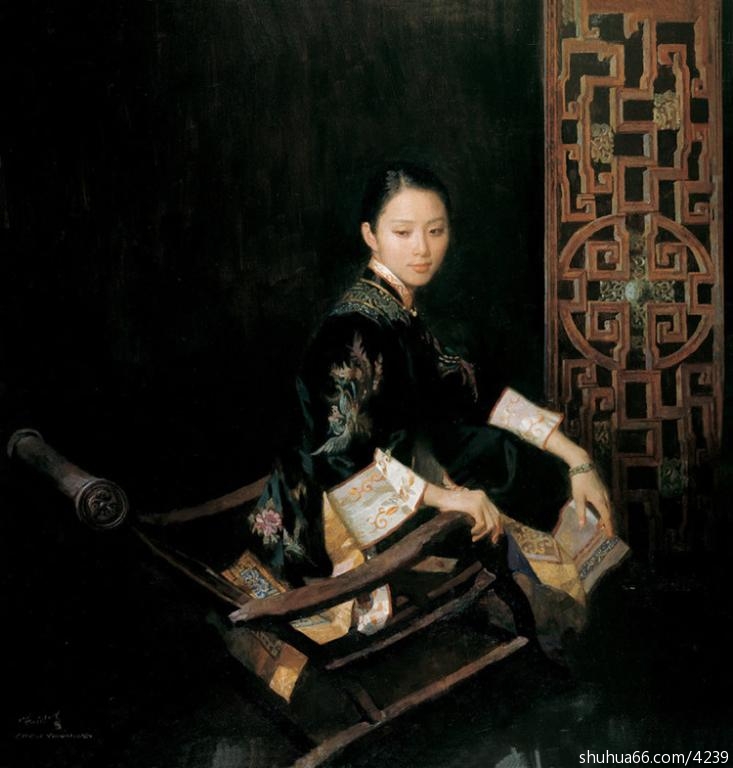 肖像画艺术在东西方均有悠久的历史,可追溯到远古时代,但只是在文艺复兴之后,将客观对象作为个体加以逼真的表现才得以重视。而肖像画作为认真的艺术形式,才开始出现。陈在肖像画中将准确逼真的刻画富有诗意的形式美相结合,塑造出一个个鲜明亮丽的形象。他笔下的人物尽管都是写实风格,但却具有一种思想化的特征,折射出对象最为吸引人的一面。陈的肖像画弥漫着一种炫目的光感,令人联想起十八世纪前欧洲的伟大画家的作品。他运用复杂的技法与对细节的高度专注,设计出大师级的构图,似乎要抓住对象生活中的一个自然地瞬间为其造像,情景真实可信得仿佛他在描绘孩提时的游戏。在刻画每一位人物时,他总要精心敏锐地选择他认为最适合该对象的姿势与背景构图。无论是描绘盛名显赫的实业巨子还是表现无忧无虑的青少年,他都全然怀着同样认真的美学目的深入的构思。